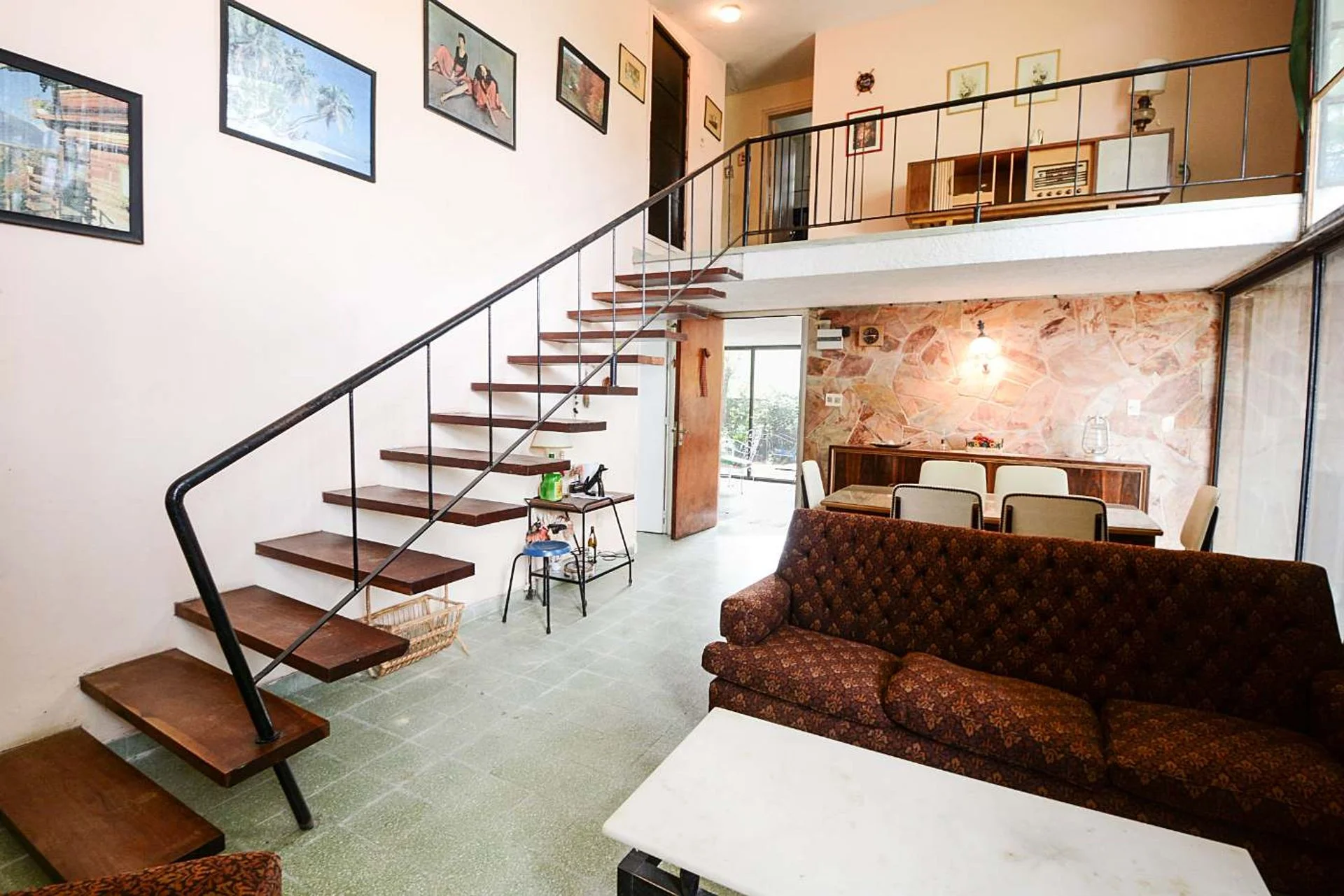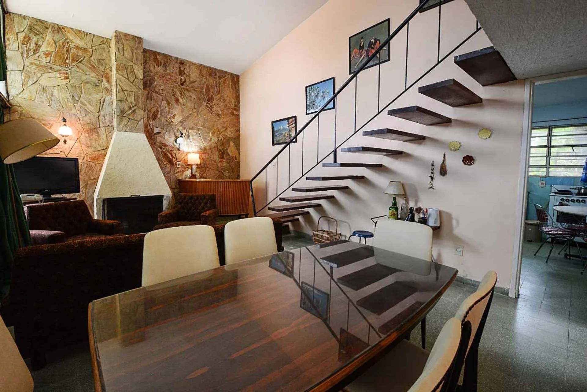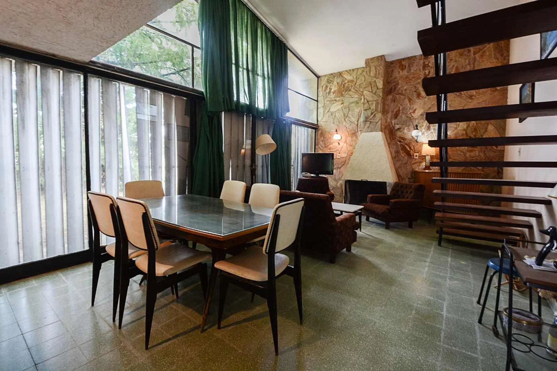 En planta baja, al ingreso gran galería de invierno vidriada, living comedor amplio con estufa a leña, cocina definida y servicio completo.