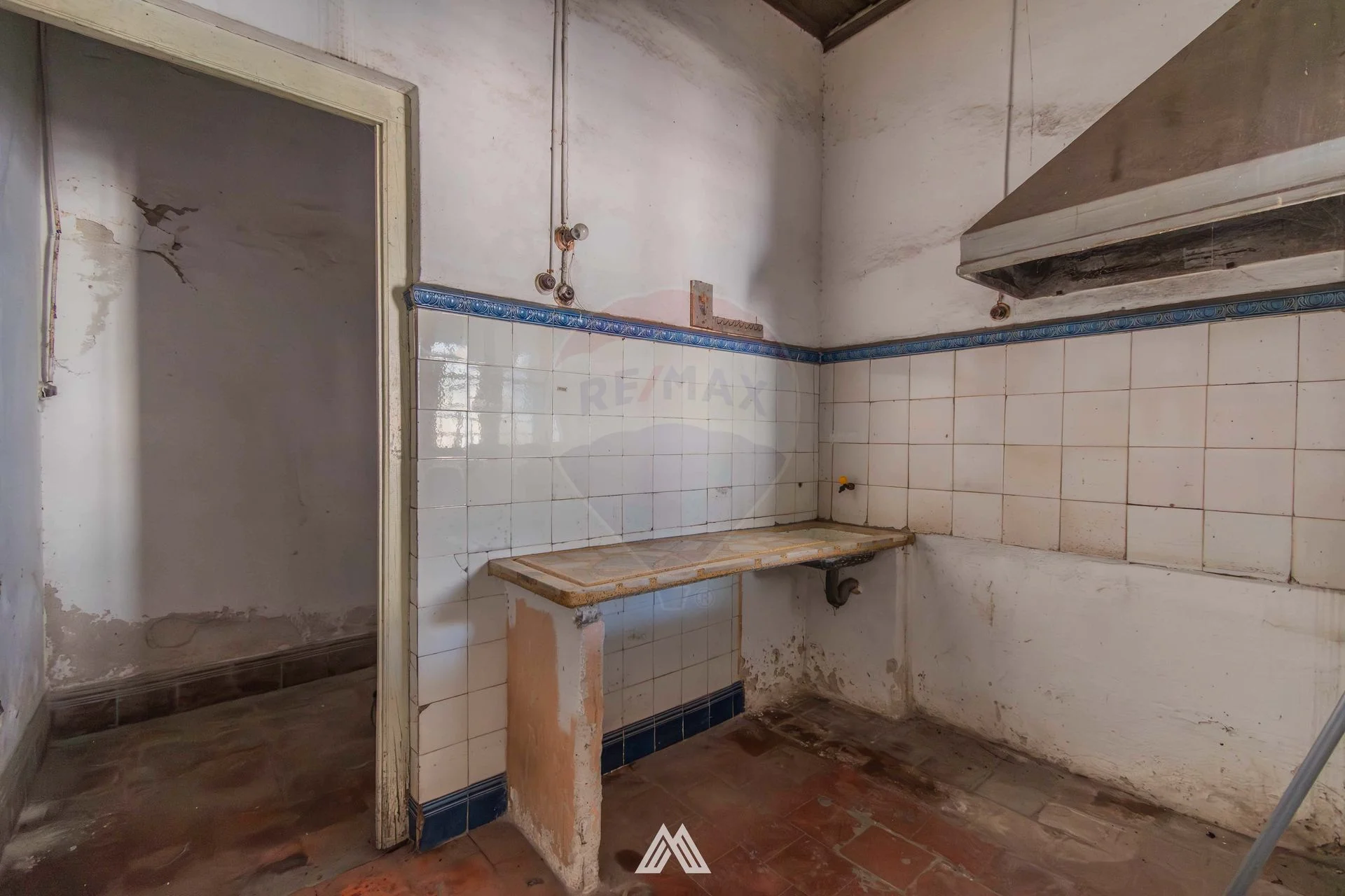 Desde allí accedemos al resto de la casa a través de otro pasillo ubicándose lo que sería el dormitorio con una ventana hacia el espacio anterior. En el fondo de la propiedad se encuentra la cocina y el baño, ambos con cielorraso de madera en mal estado, y mesada y artefactos muy antiguos. Detrás de la cocina hay una habitación sin ventilación que debe haber sido usada como despensa.