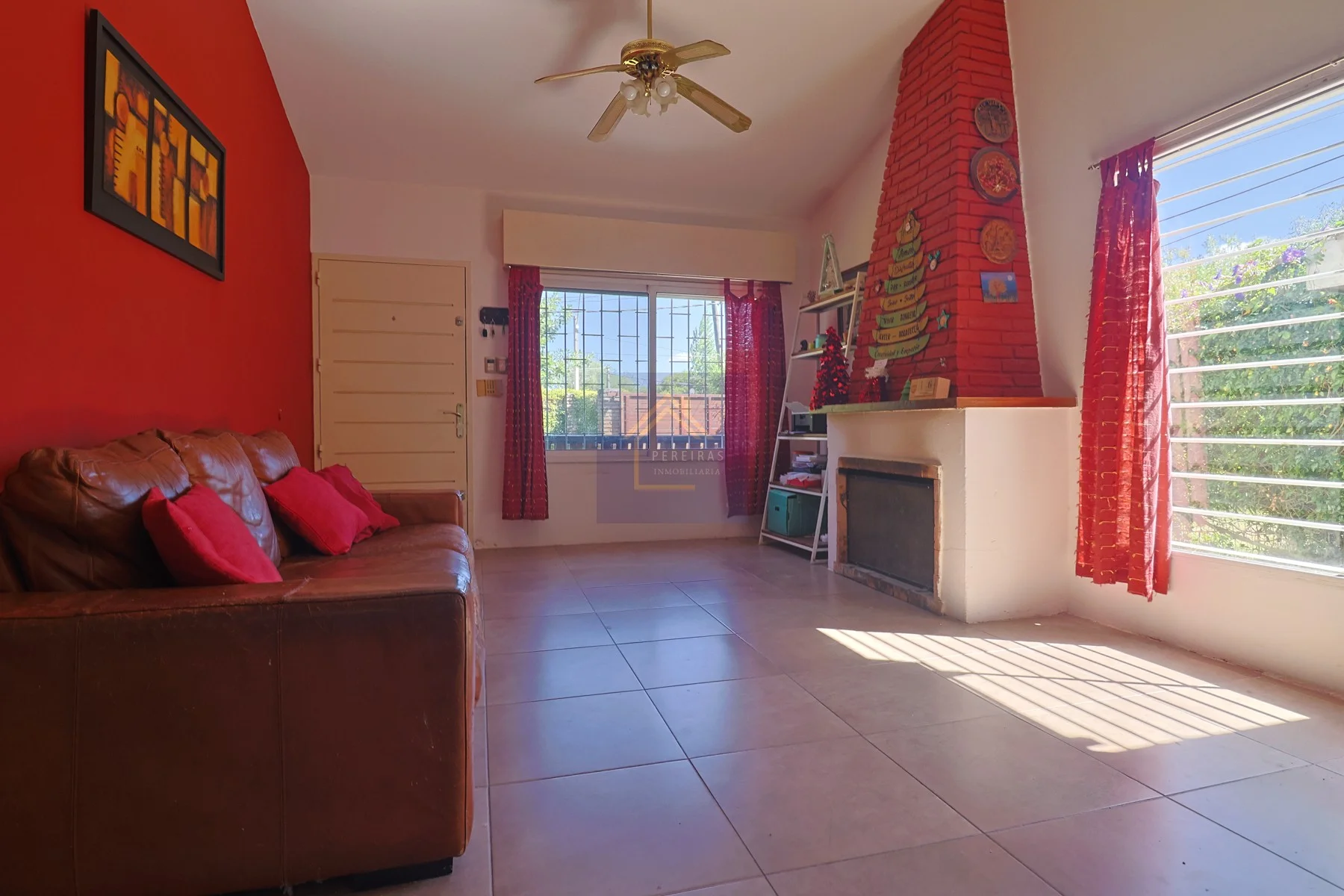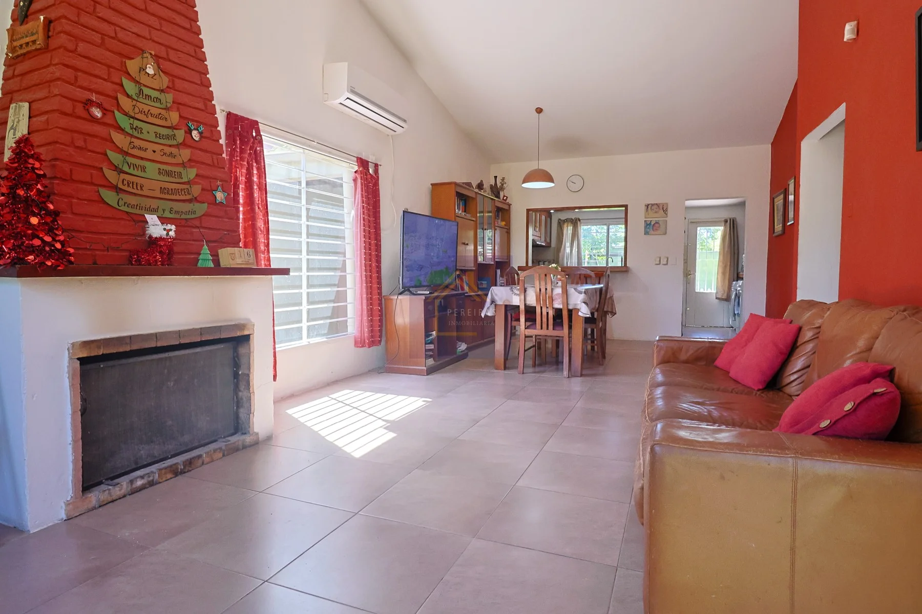 Ingreso a la vivienda a través de un amplio living, muy luminoso gracias a su orientación norte, con estufa a leña.