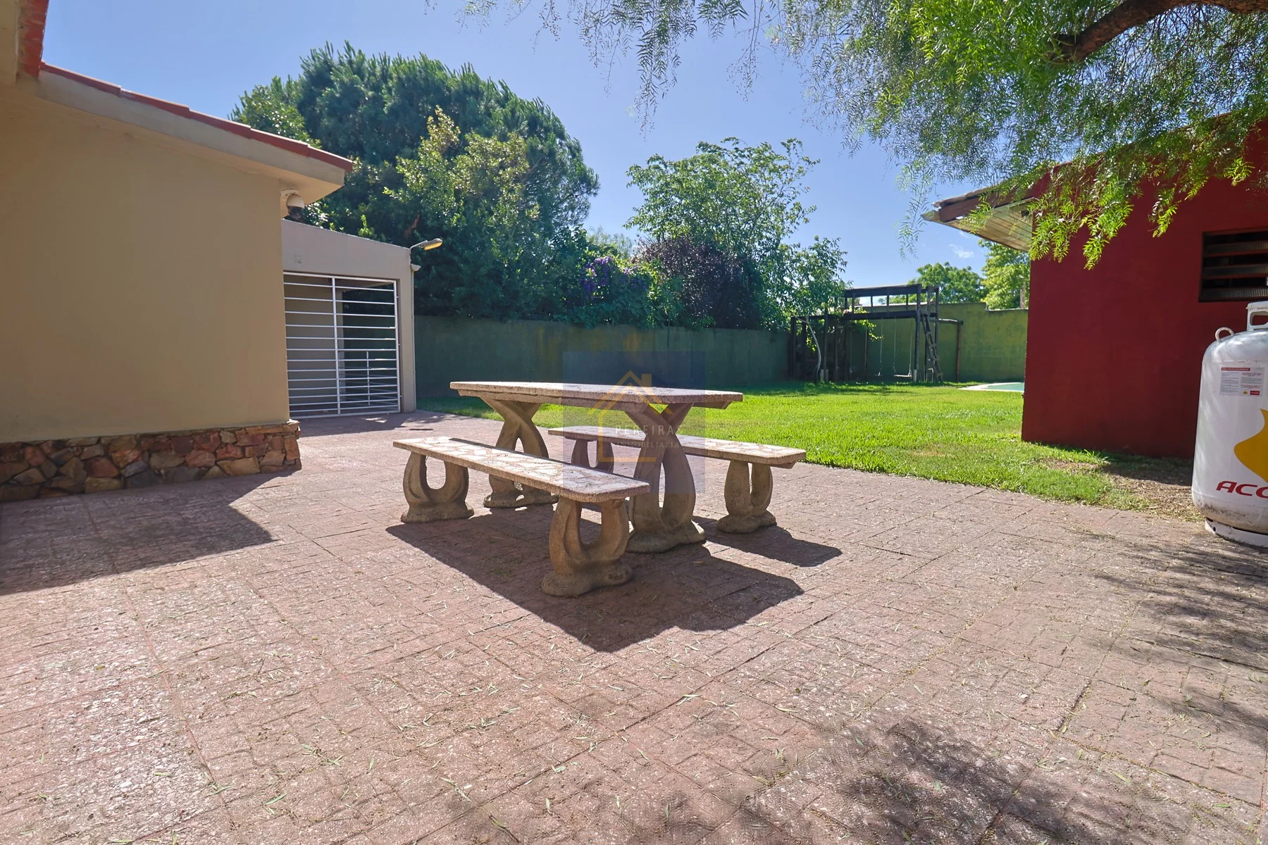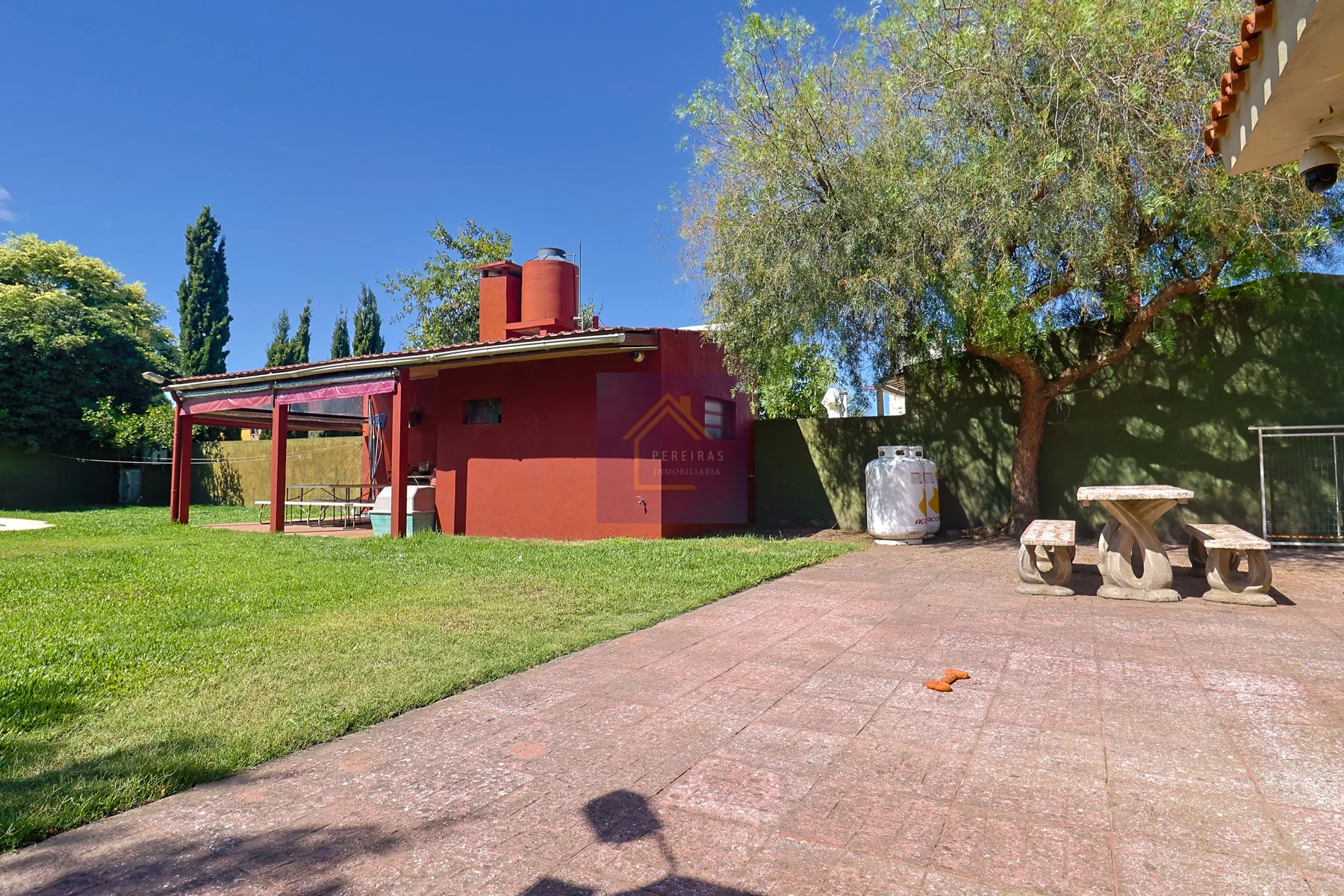 Cuenta con un gran fondo, muy disfrutable, con muros perimetrales y sistema de riego con bomba en todo el jardín (en el frente y en el fondo).