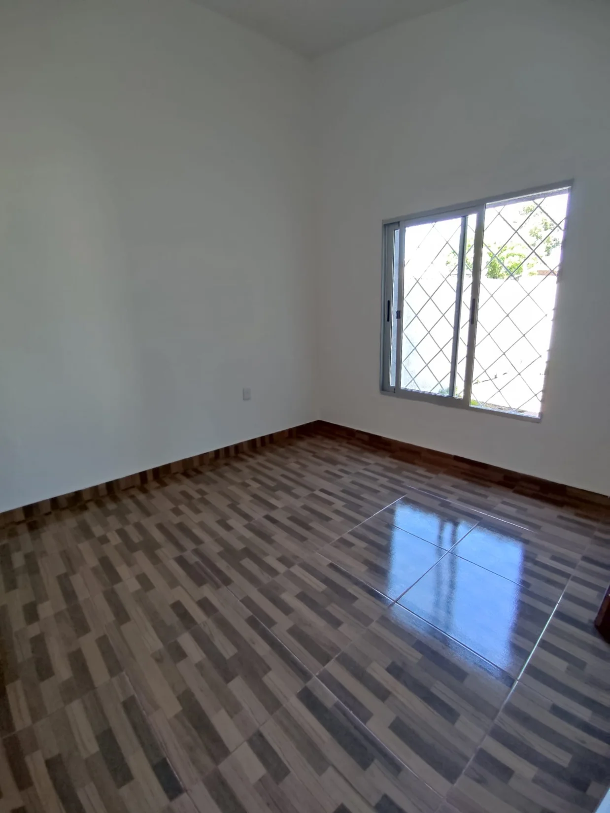 Comedor con gran ventanal y piso en cerámica.