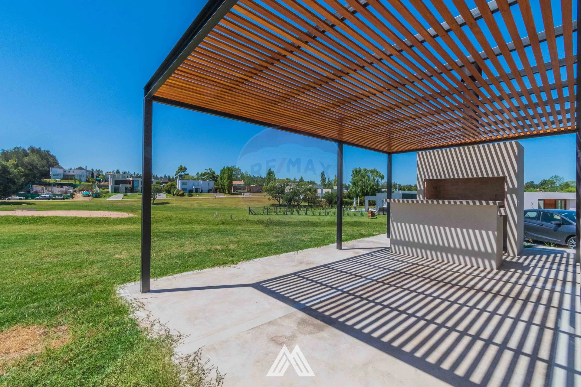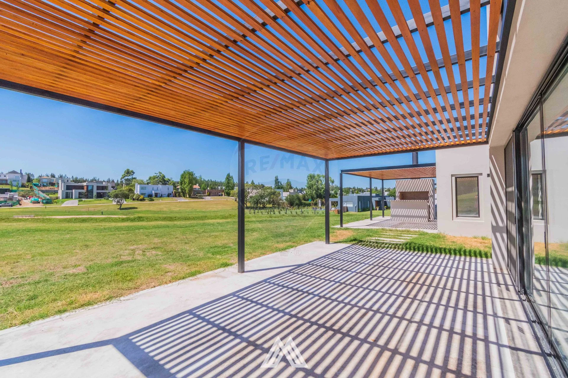 Pergola con parrillero a la salida del estar.