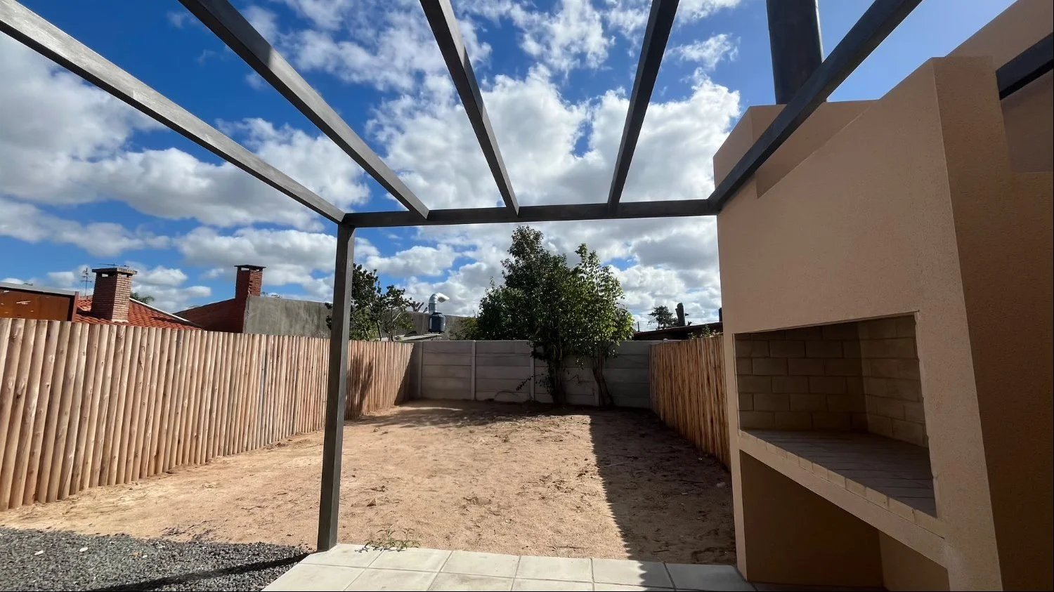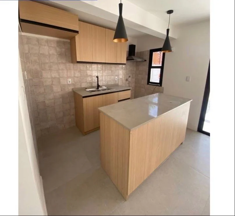 Comodidades : Planta baja: Jardín y cochera . Acceso a gran living comedor , con cocina semi integrada , con placares y barra y salida al fondo . 1 Baño completo . Placard con previsión para instalación de lavarropa. Fondo amplio con parrillero y pérgola.