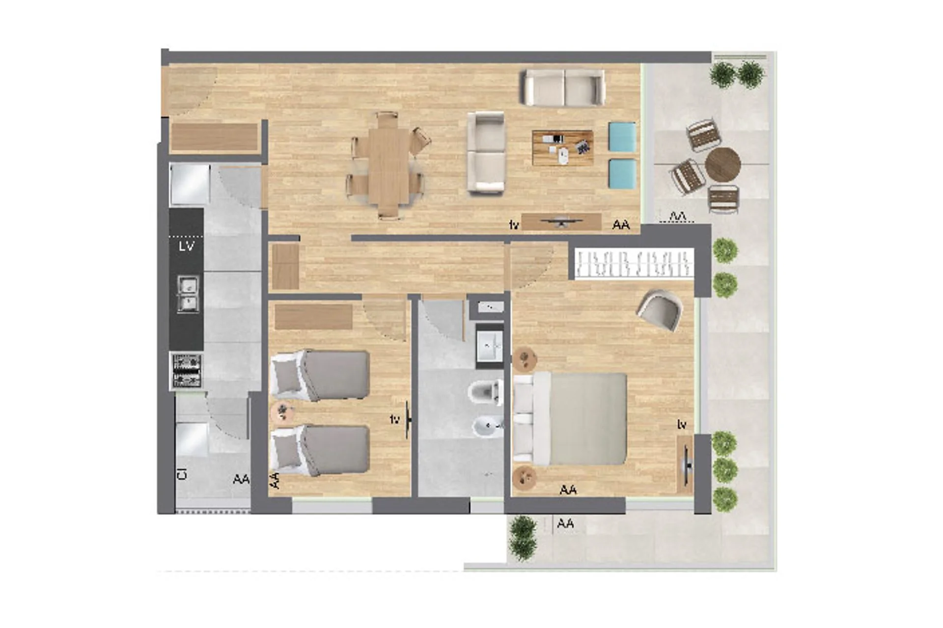 Los apartamentos tienen excelentes dimensiones.