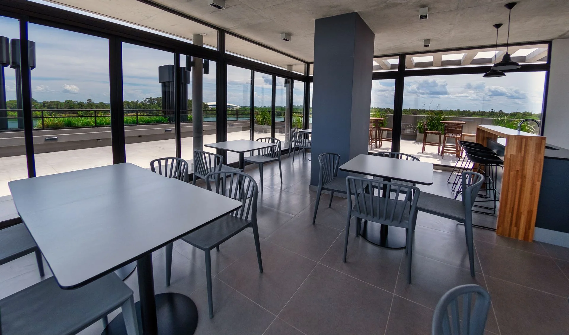 En el último piso tenemos SUM, totalmente amoblado, con aire acondicionado, y unas vistas que permiten trabajar, desayunar o festejar en un lugar paradisiaco.
