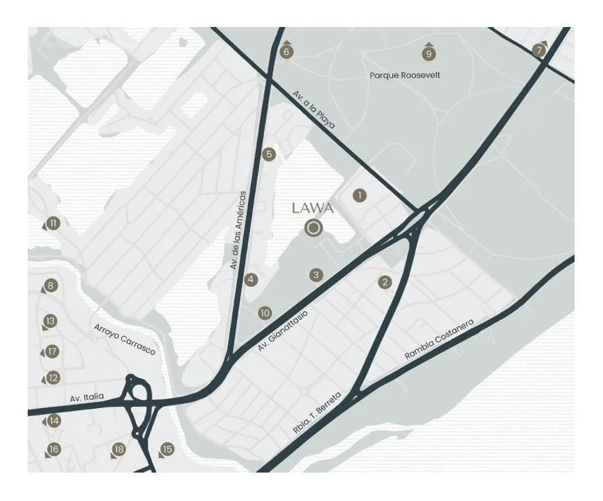 Apartamento 1 dormitorio en el edificio Lawa. Un proyecto ubicado en el emblemático predio de la antigua Hostería del Lago. Se encuentra a solo 15 minutos de Zonamérica y 5 minutos del Aeropuerto de Carrasco, a orillas de uno de los lagos más exclusivos de Carrasco Este.