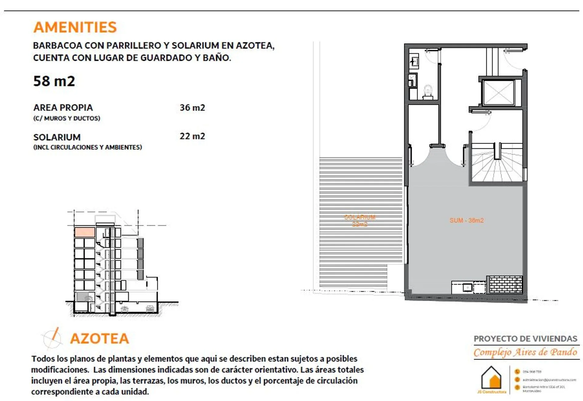 El complejo Aires de Pando comienza sus obras el próximo año 2026, tiene fecha prevista de entrega a fines del año 2027, es una torre con 2 locales comerciales y 20 apartamentos de uno, dos y tres dormitorios, ascensor, cocheras en planta baja y subsuelo y barbacoa con solarium en el roof top.