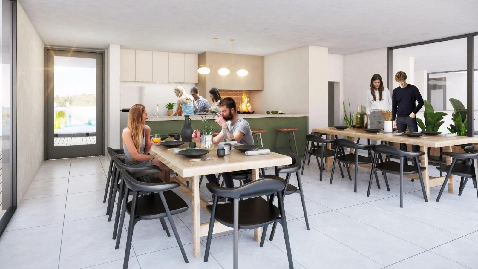 Barbacoa (SUM) con parrillero y espacio exterior de expansión con sector pergolado de