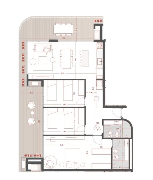 Living Comedor amplio con Cocina Integrada - salida a Terraza