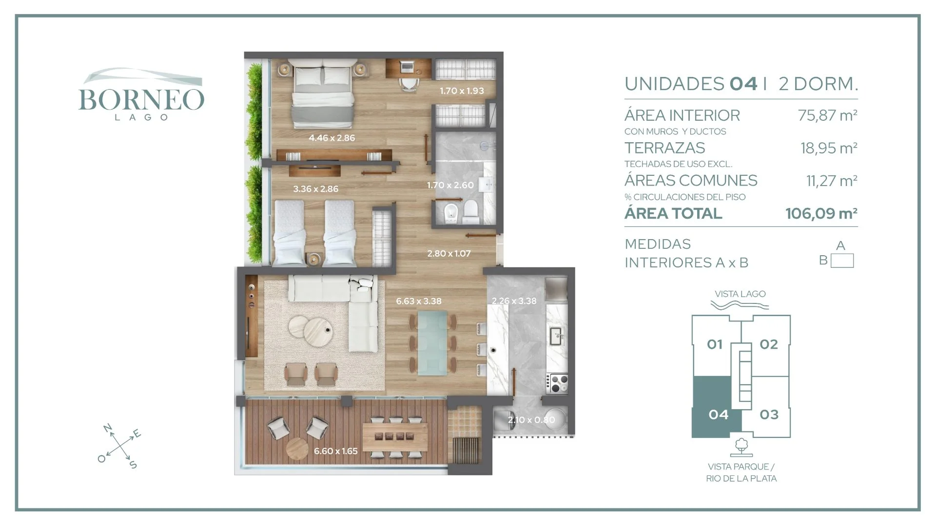Borneo Lago es ideal para quienes buscan vivir en un entorno natural, tranquilo y cerca de la ciudad. Está ubicado entre el Parque Roosevelt y el Lago Calcagno, una zona perfecta para familias jóvenes que quieren más aire libre, verde y calidad de vida.