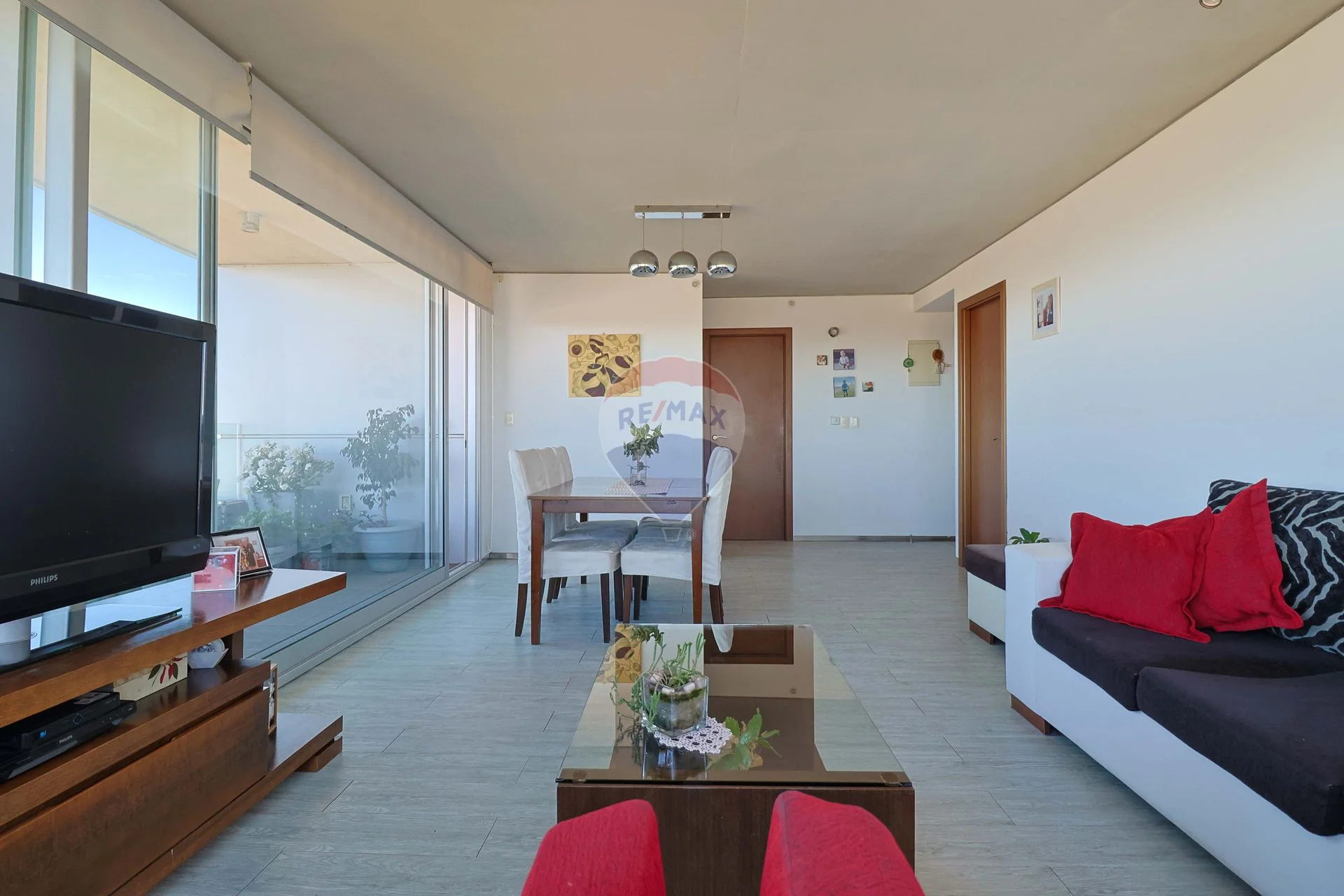 La unidad cuenta al ingresar con amplio y luminoso living comedor con ventanales de DVH, con salida a terraza con vistas al mar y la ciudad.