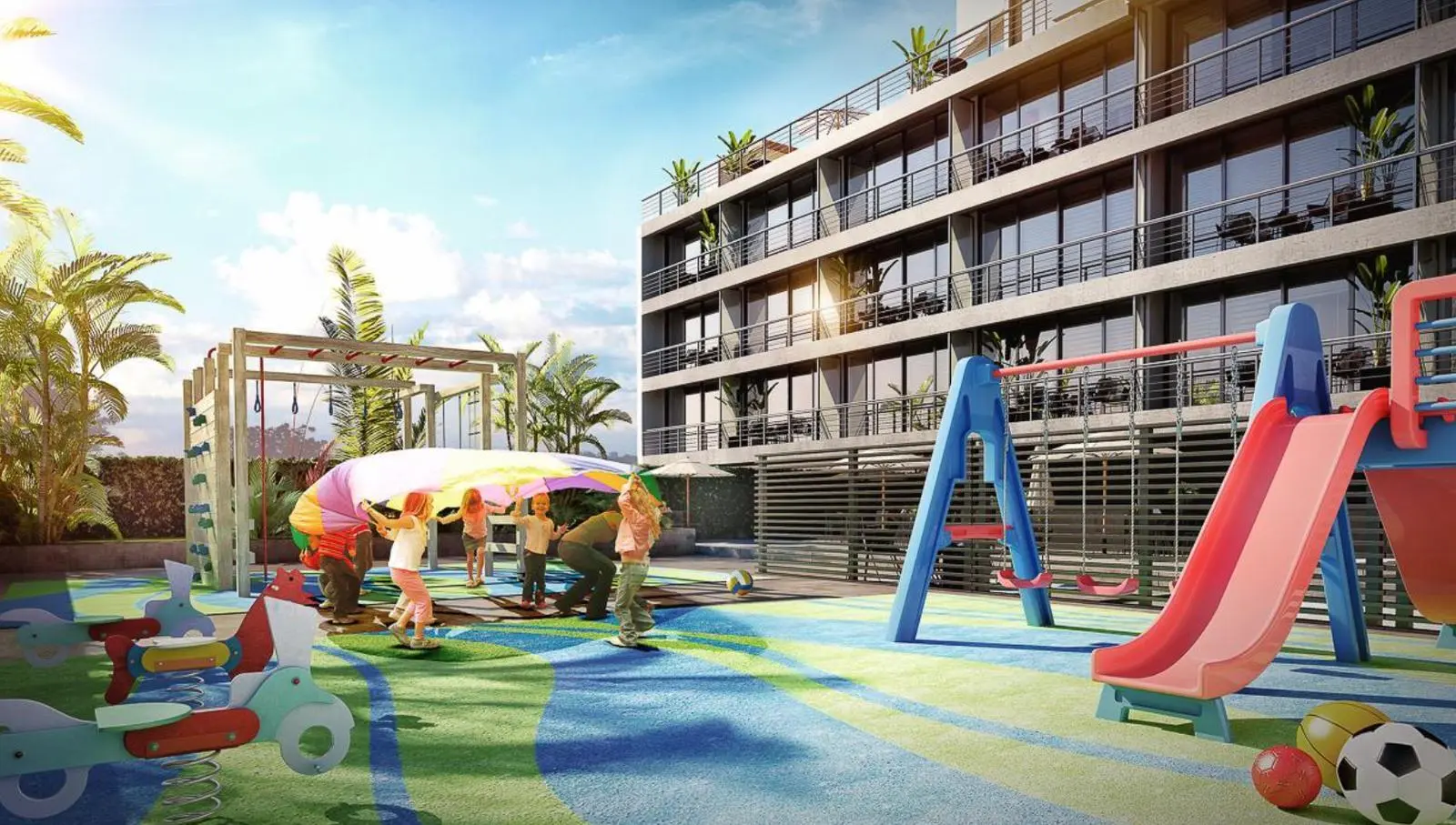 Solárium con equipamiento exterior.