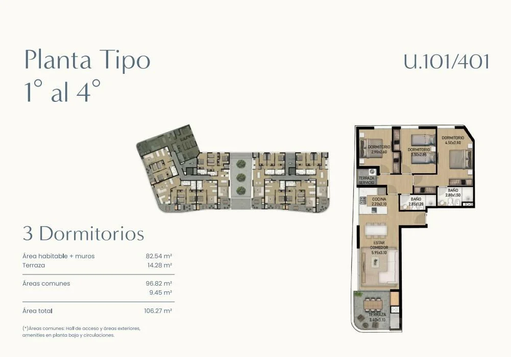 Áreas comunes: 9.5 m²
