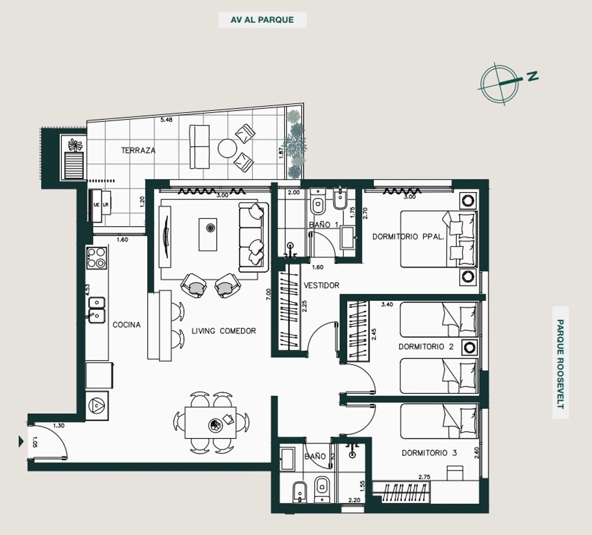 Aire acondicionado multi-split en living y dormitorios, horno eléctrico, anafe y campana extractora en cocinas. Doble vidrio en living comedor y cortinas de enrollar en dormitorios.