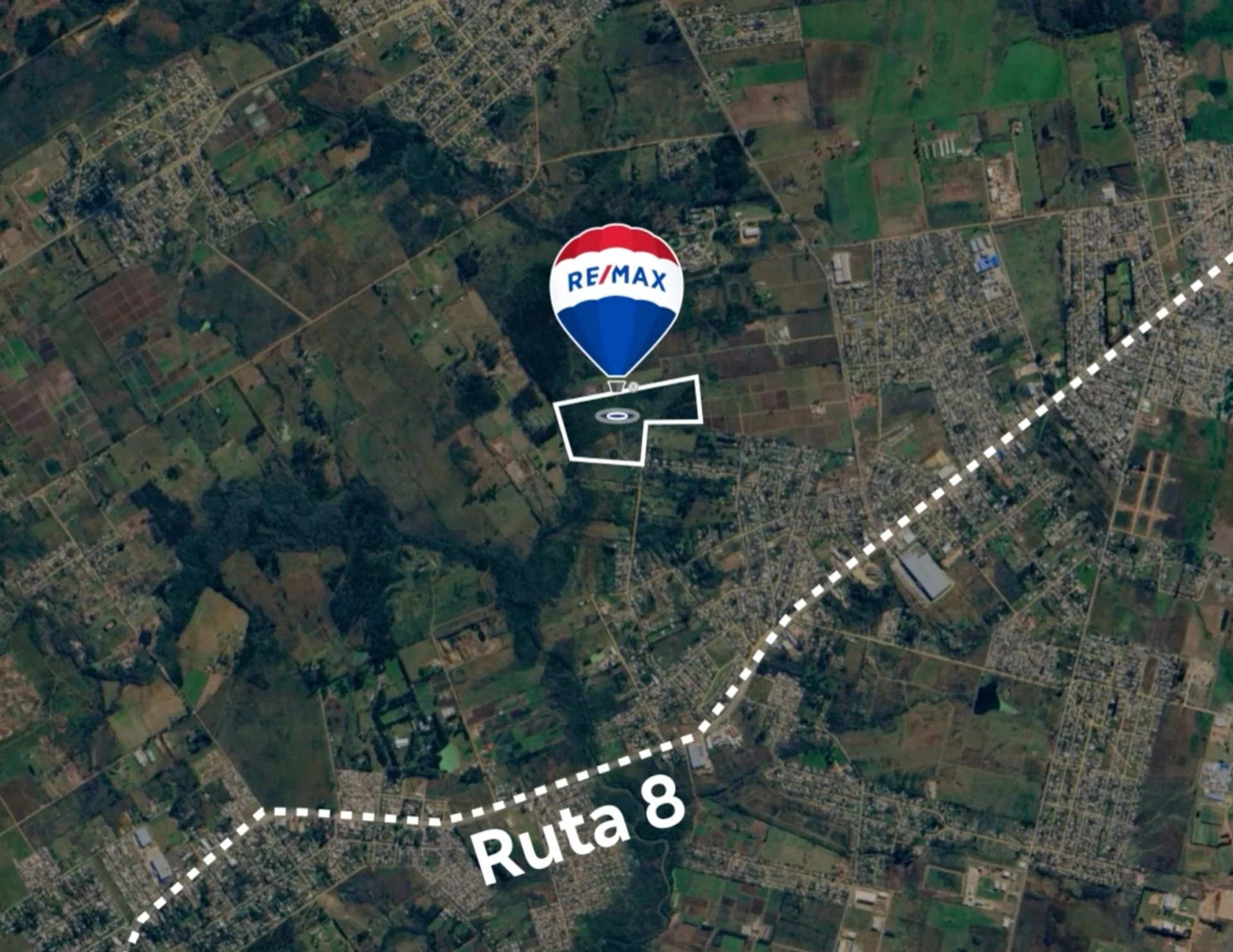 A 1,5 Km de Ruta 8, en el limite de Montevideo y Canelones.