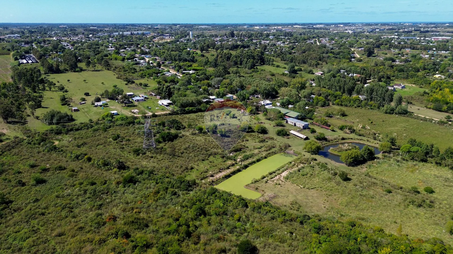 Hay una columna de alta tensión en el predio.