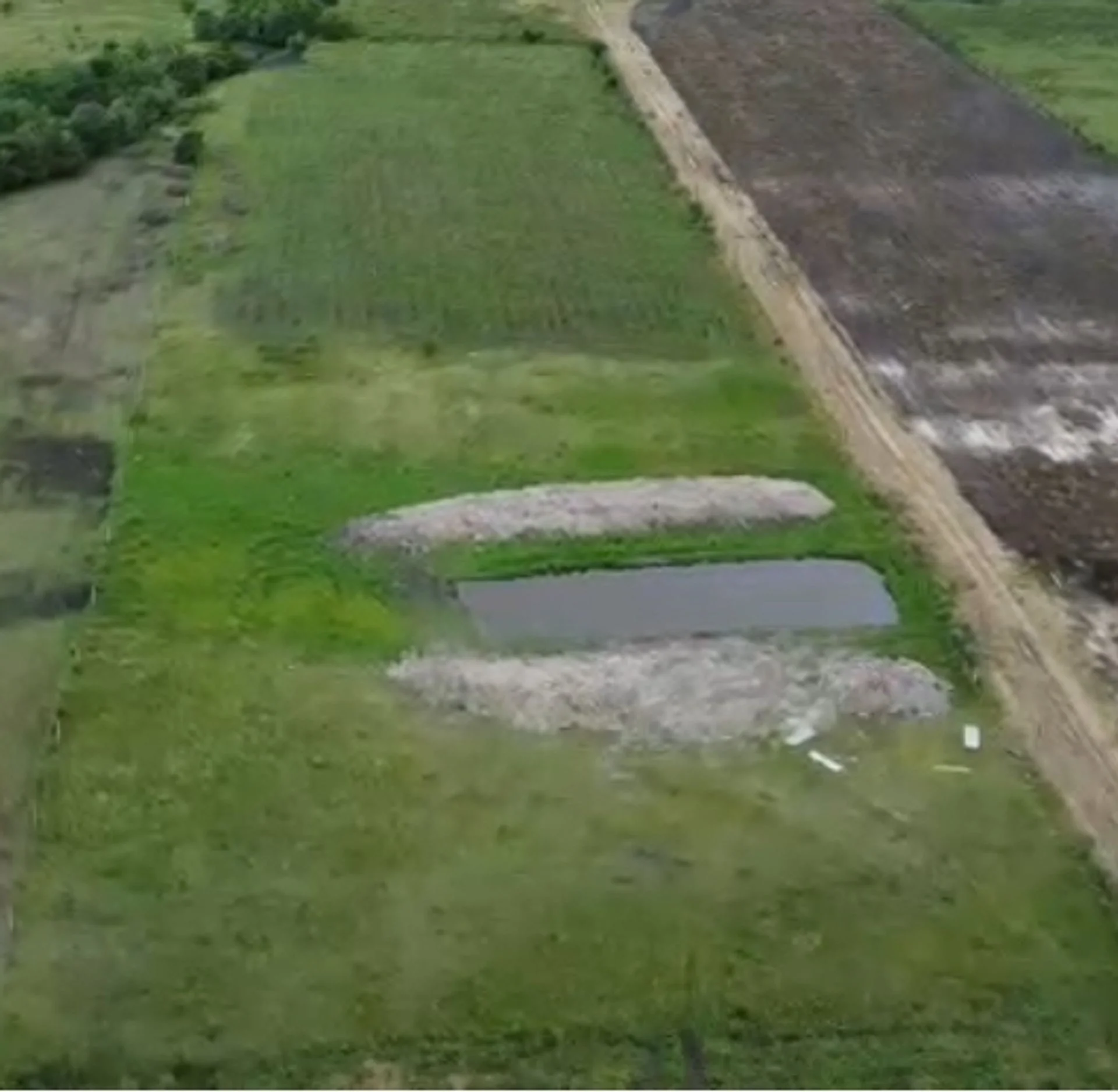 Una parte del campo esta alambrado con postes y alambrado eléctrico, hay más postes para continuar con la instalación de este.