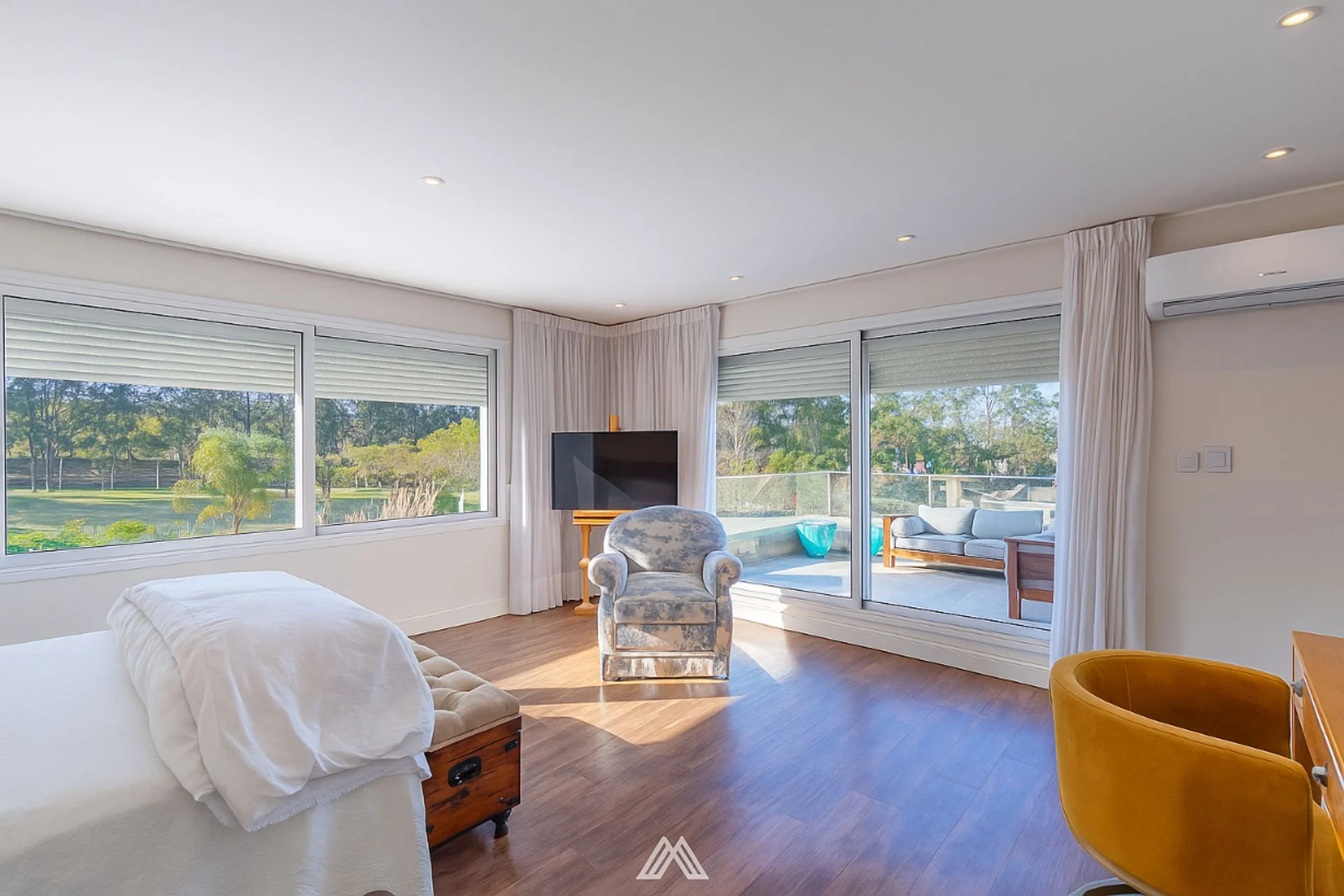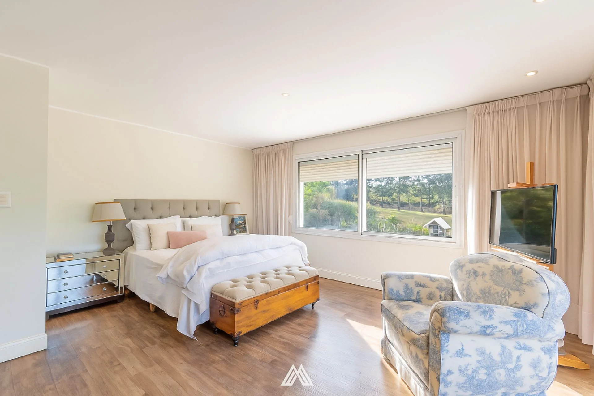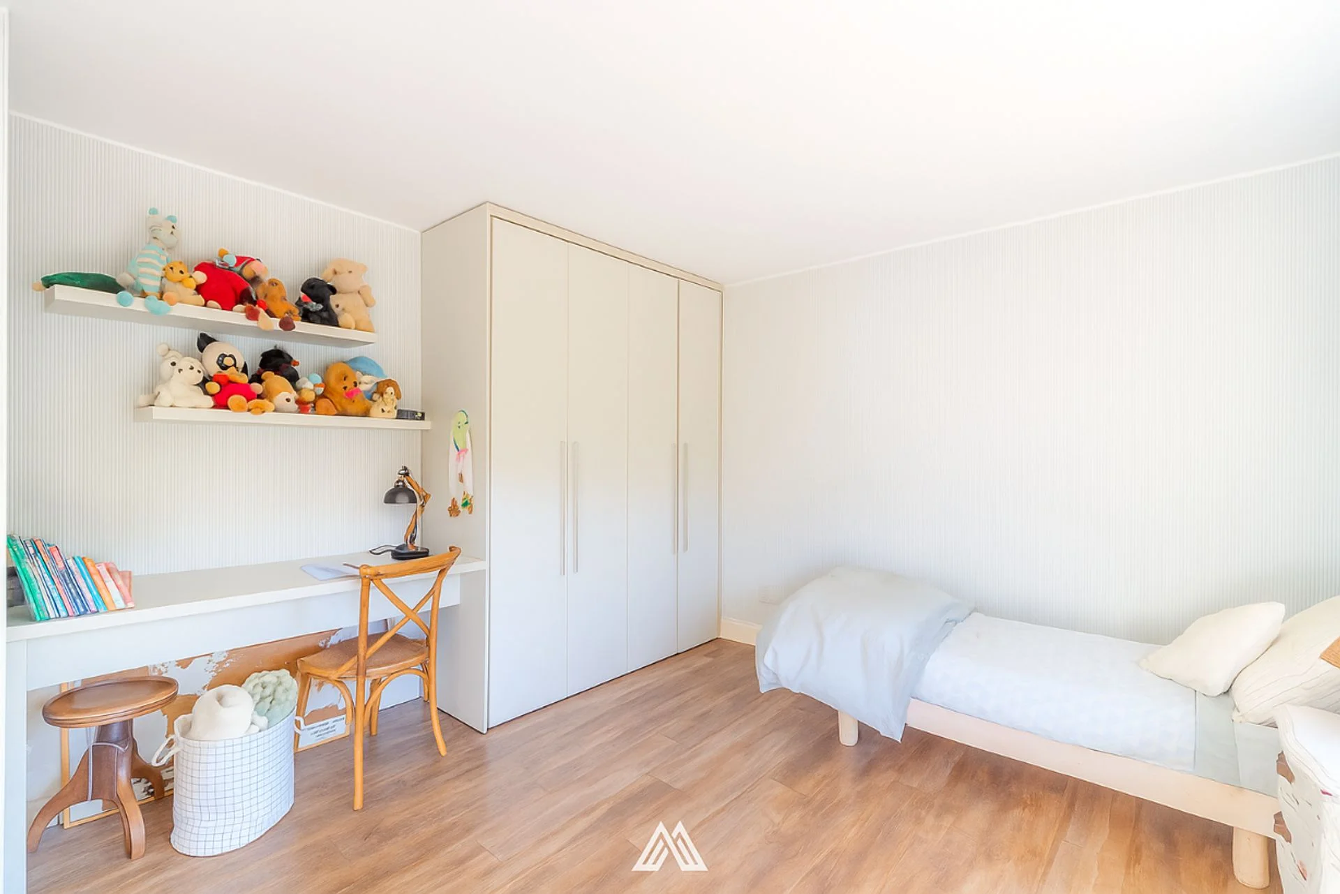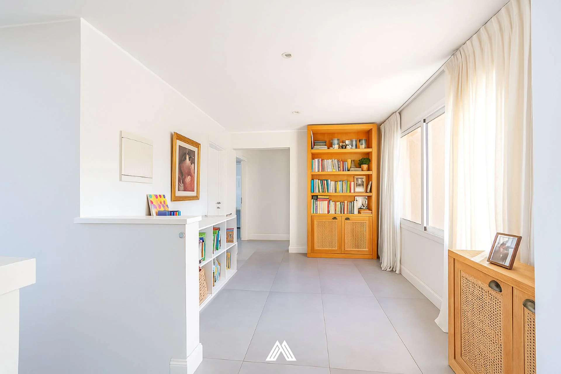 En el nivel superior se ubican tres dormitorios amplios, el principal con baño en suite, vestidor y terraza privada, además de dos dormitorios que comparten un baño completo. Un acogedor estar íntimo completa este piso, pensado como rincón de lectura o área de descanso familiar.