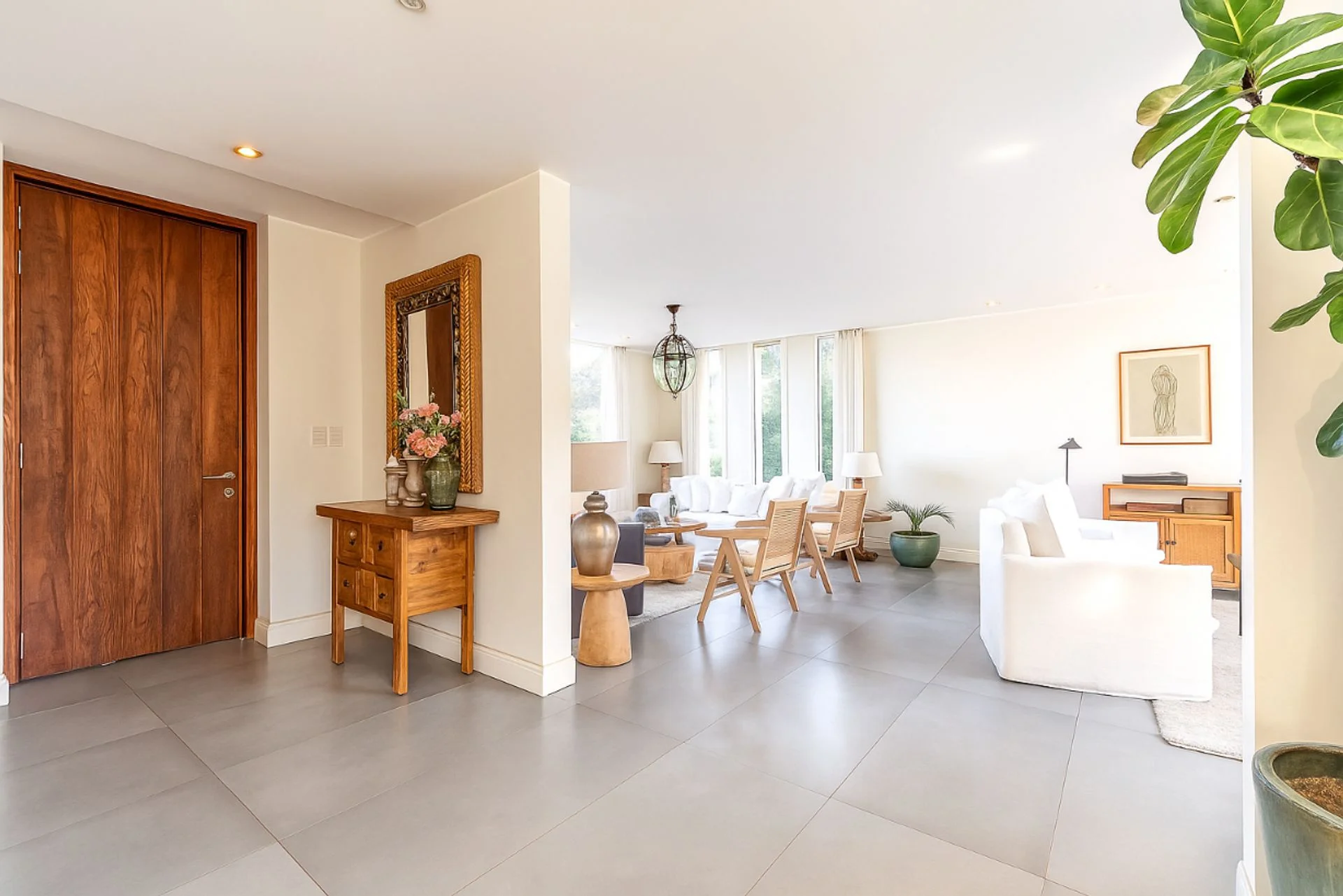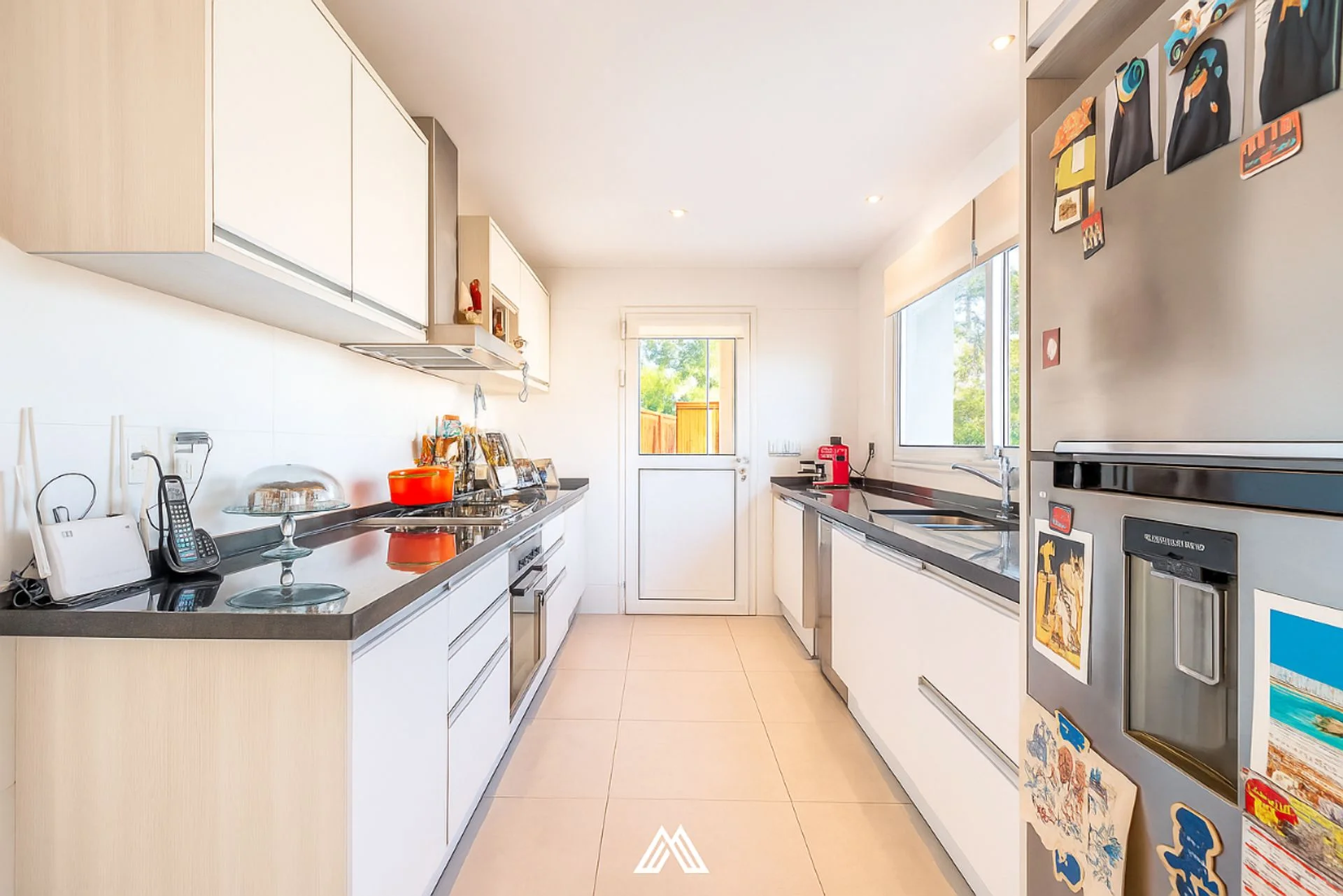 En la planta baja, la entrada principal conduce a un recibidor con toilette. Un living espacioso y muy iluminado se abre hacia la terraza, mientras que un gran estar con estufa a leña se integra al comedor, creando un ambiente cálido y funcional. Desde allí se accede a una galería cubierta con parrillero, perfecta para reuniones sociales. También en este nivel se encuentran la cocina definida, el lavadero y un dormitorio de servicio con baño.