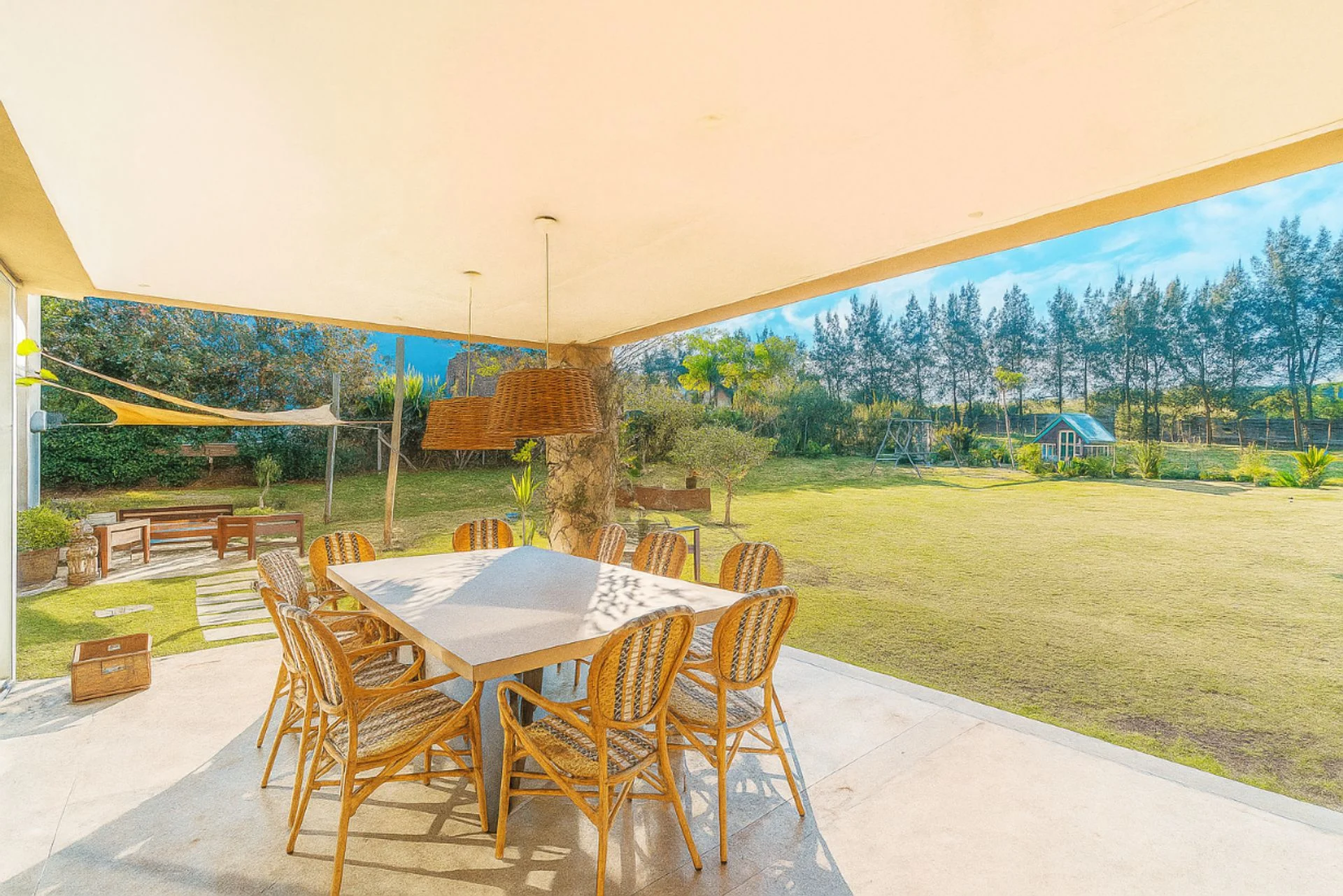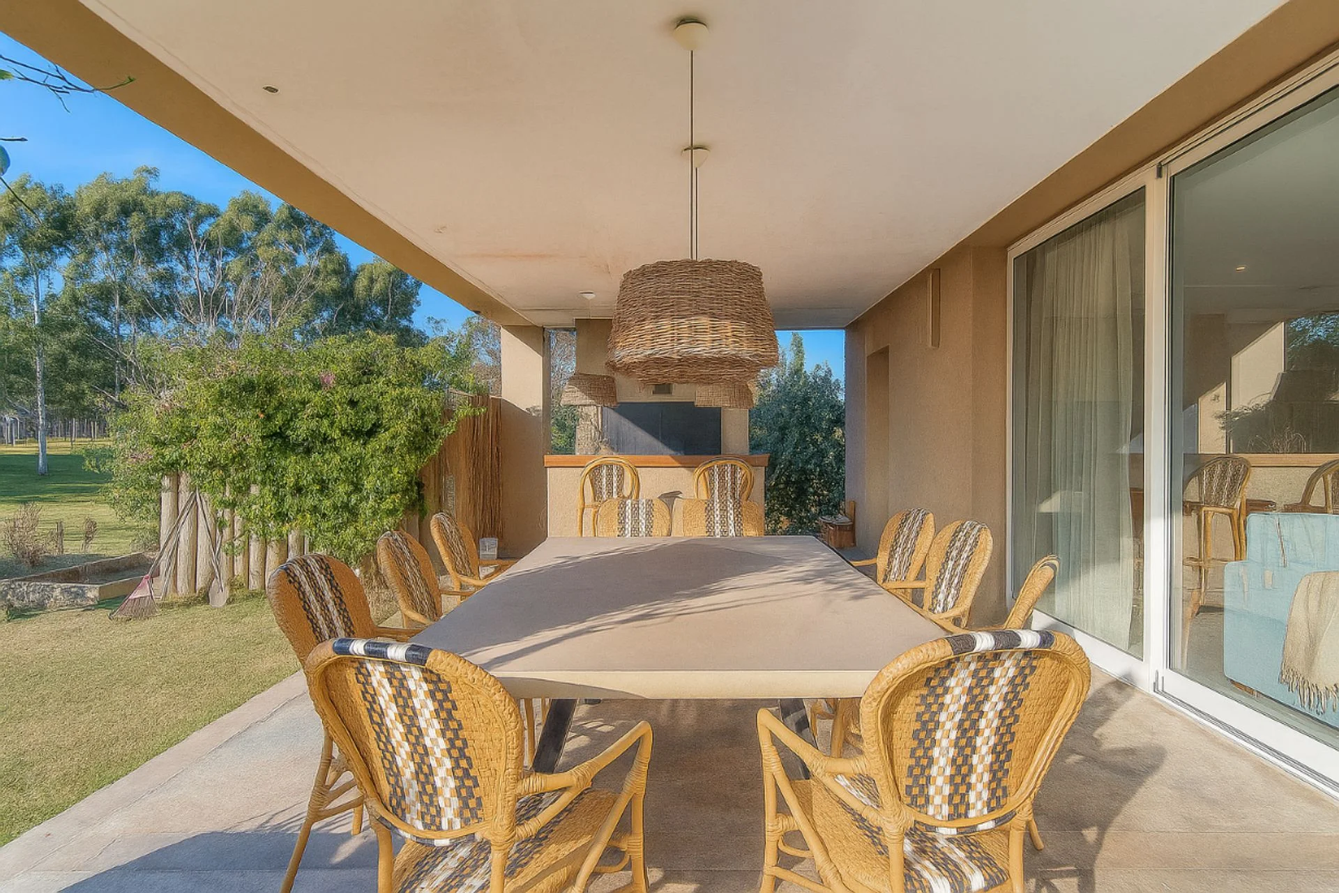 El exterior destaca por un jardín privado amplio y prolijo, además de una galería techada de más de 20 m² equipada con parrillero. La propiedad dispone de cochera techada para dos autos.