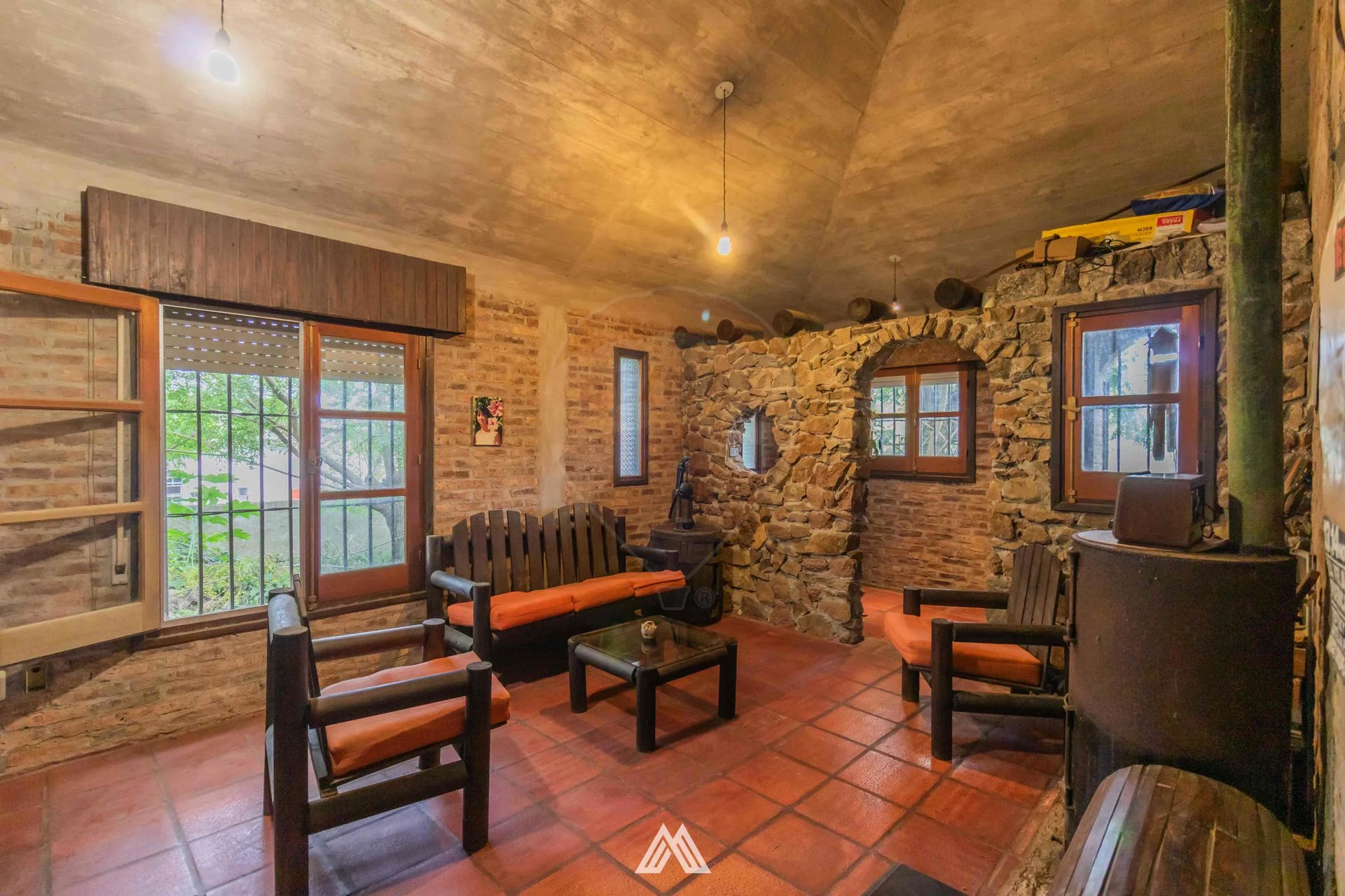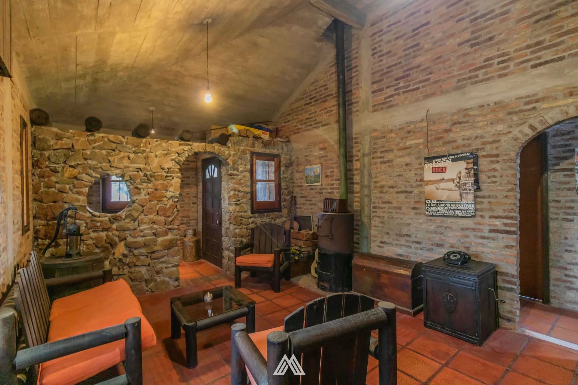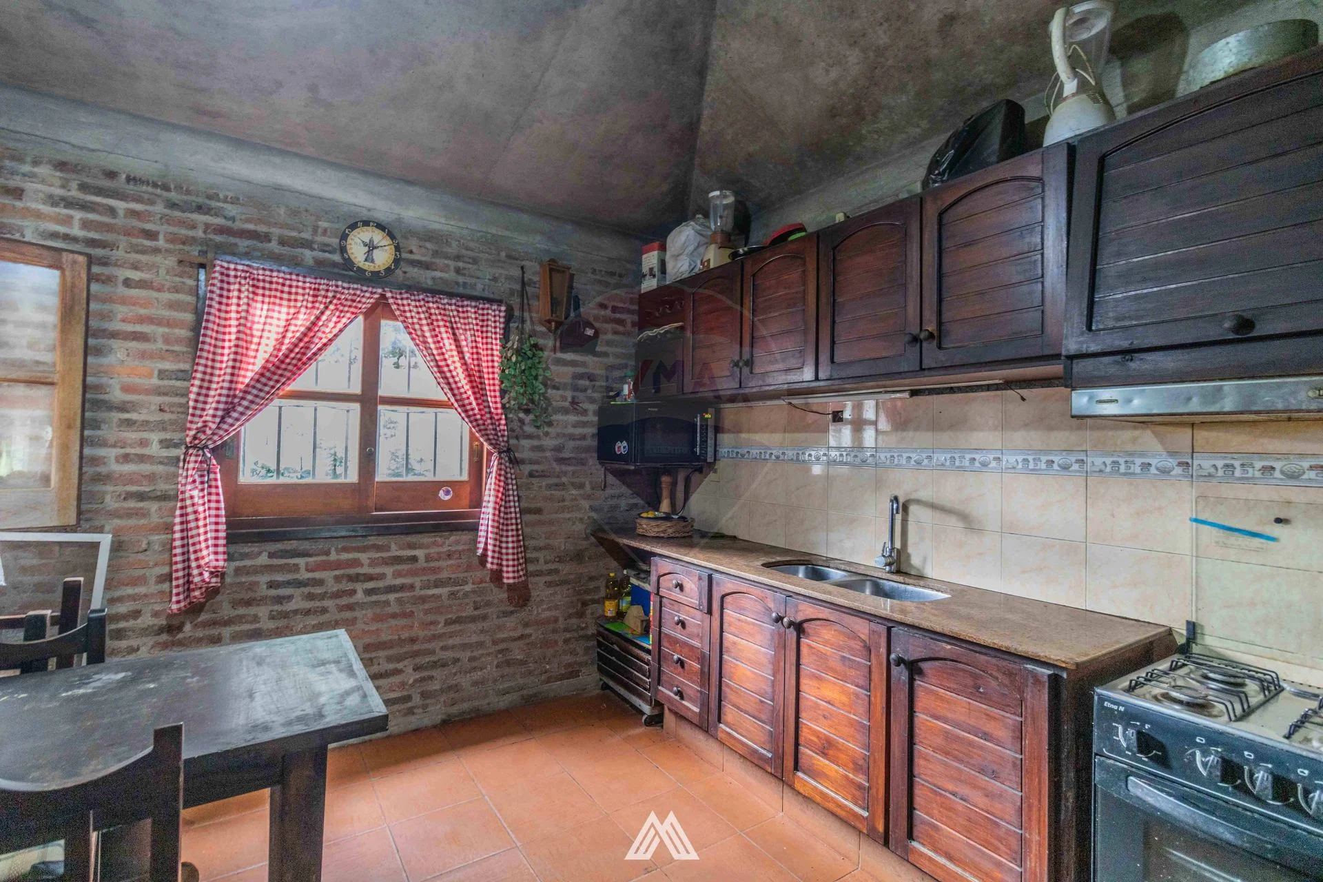 En la sala se destaca una gran estufa a leña y un calefactor. También cuenta con un comedor diario y habitación de usos múltiples. La casa principal tiene 3 dormitorios de los cuales uno es en suite. Los dos baños tienen buen tamaño y terminaciones. La cocina tiene mesada de granito y muebles de madera.