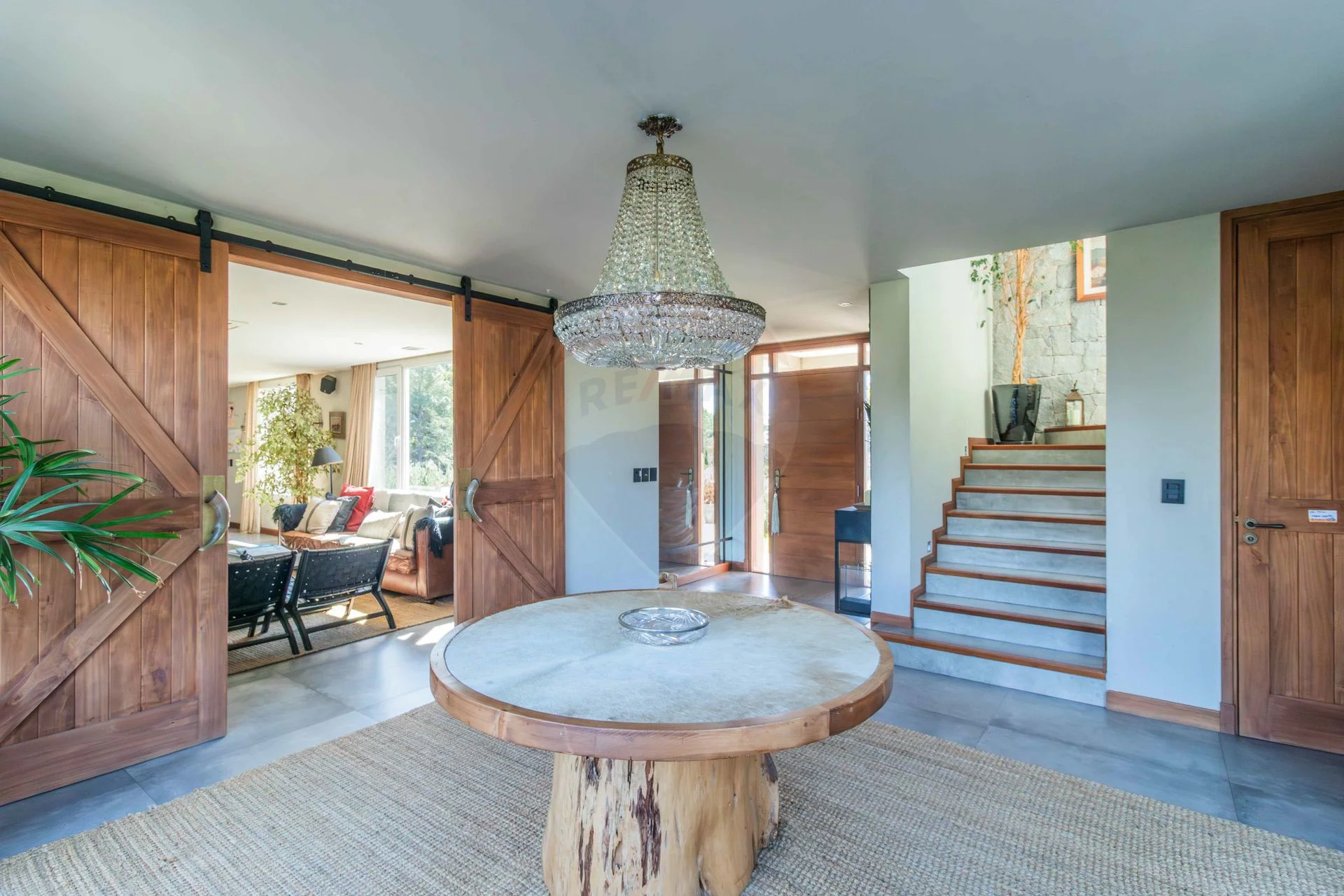 La casa se desarrolla en dos pisos con un área de 429 metros 2 construida por el estudio Bazzurro, padrón único, dentro de un terreno de 2300mts2 con estilo contemporáneo, y decorada con especial cuidado por estudio de interiorismo, con pisos de roble importados en toda la casa y losa radiante.