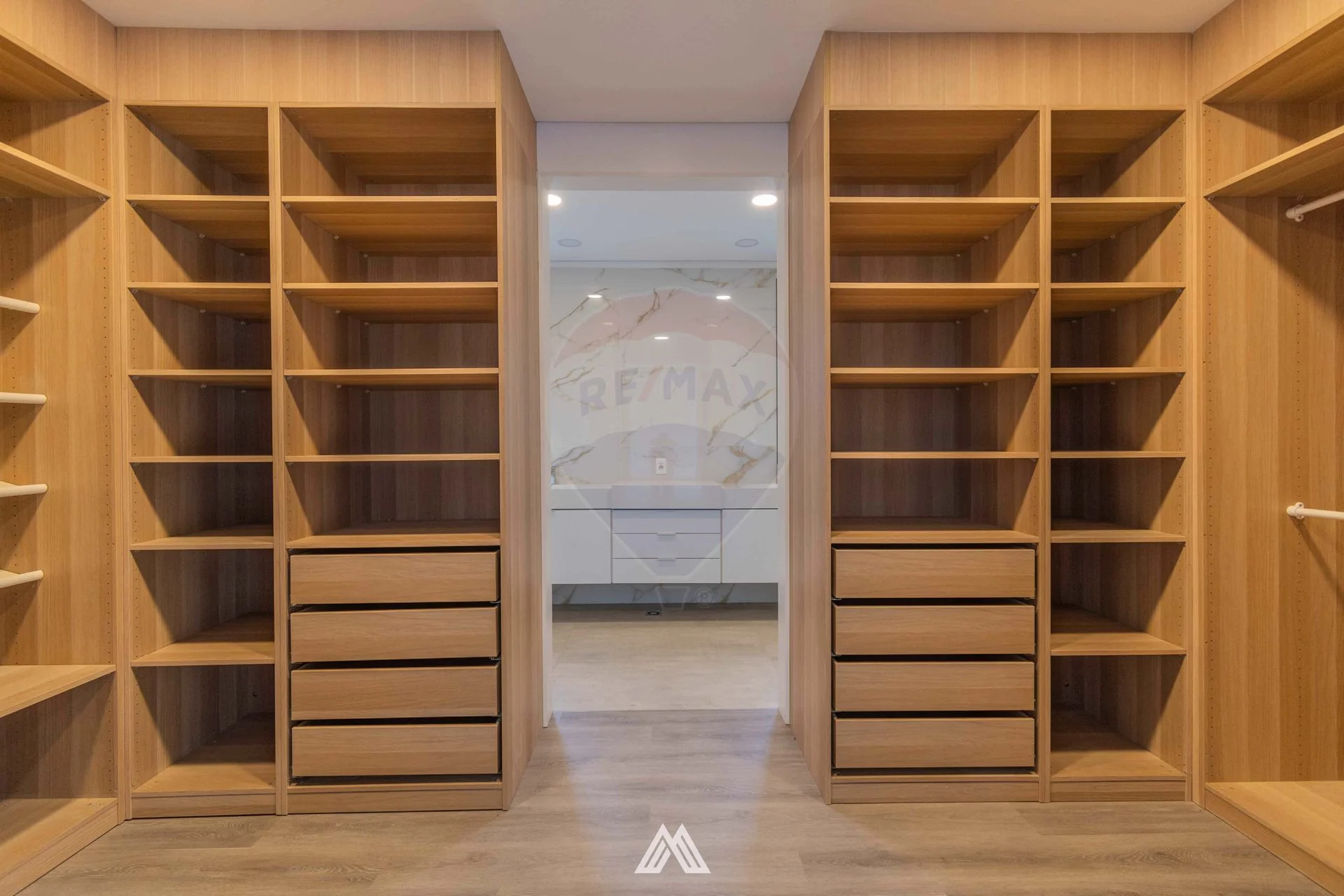 El dormitorio principal con vestidor y baño en suite.