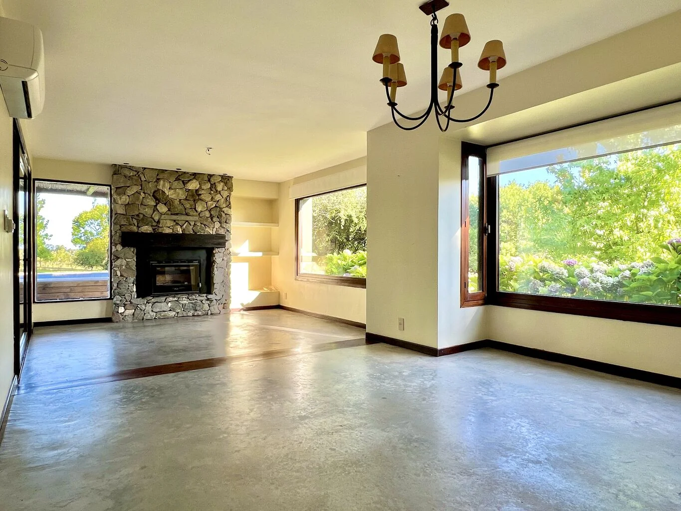 - Amplio y luminoso living comedor con estufa a leña y amplios ventanales que permiten la entrada de luz natural durante