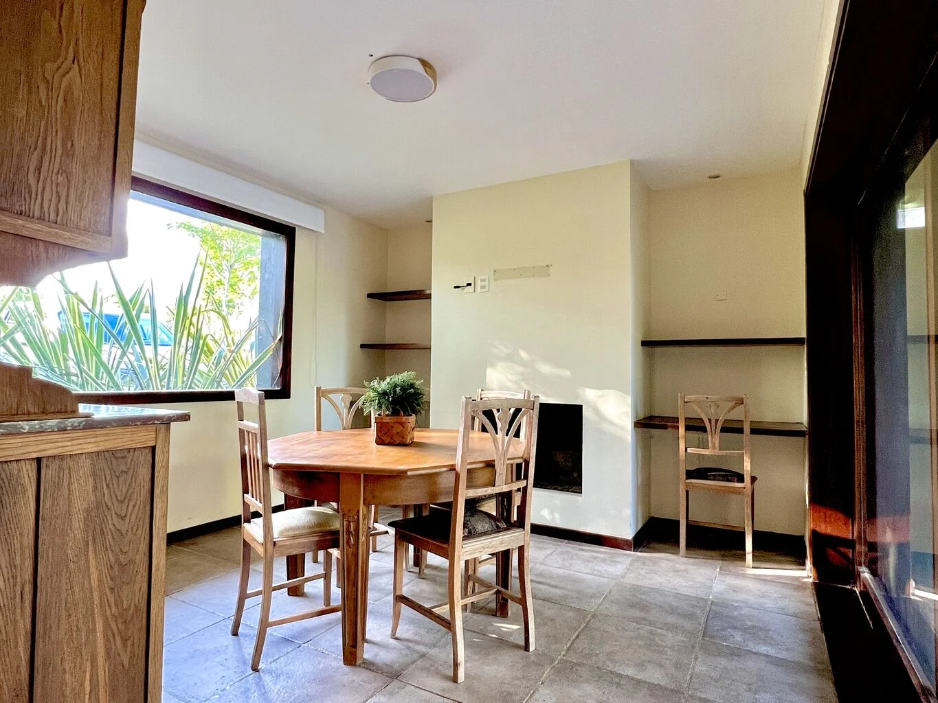 - Espacio para comedor diario o Estar con estufa a leña independiente y con salida a la terraza con parrillero.