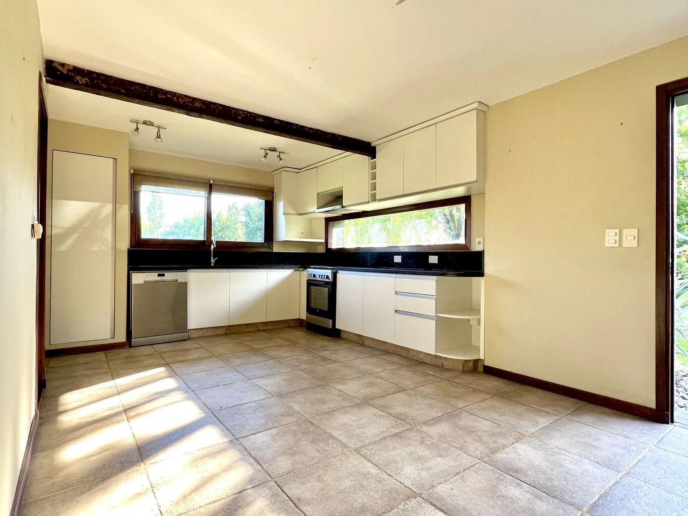- Amplia cocina definida, con placares bajo y sobre mesada, con puerta que conecta también al Hall de distribución de la