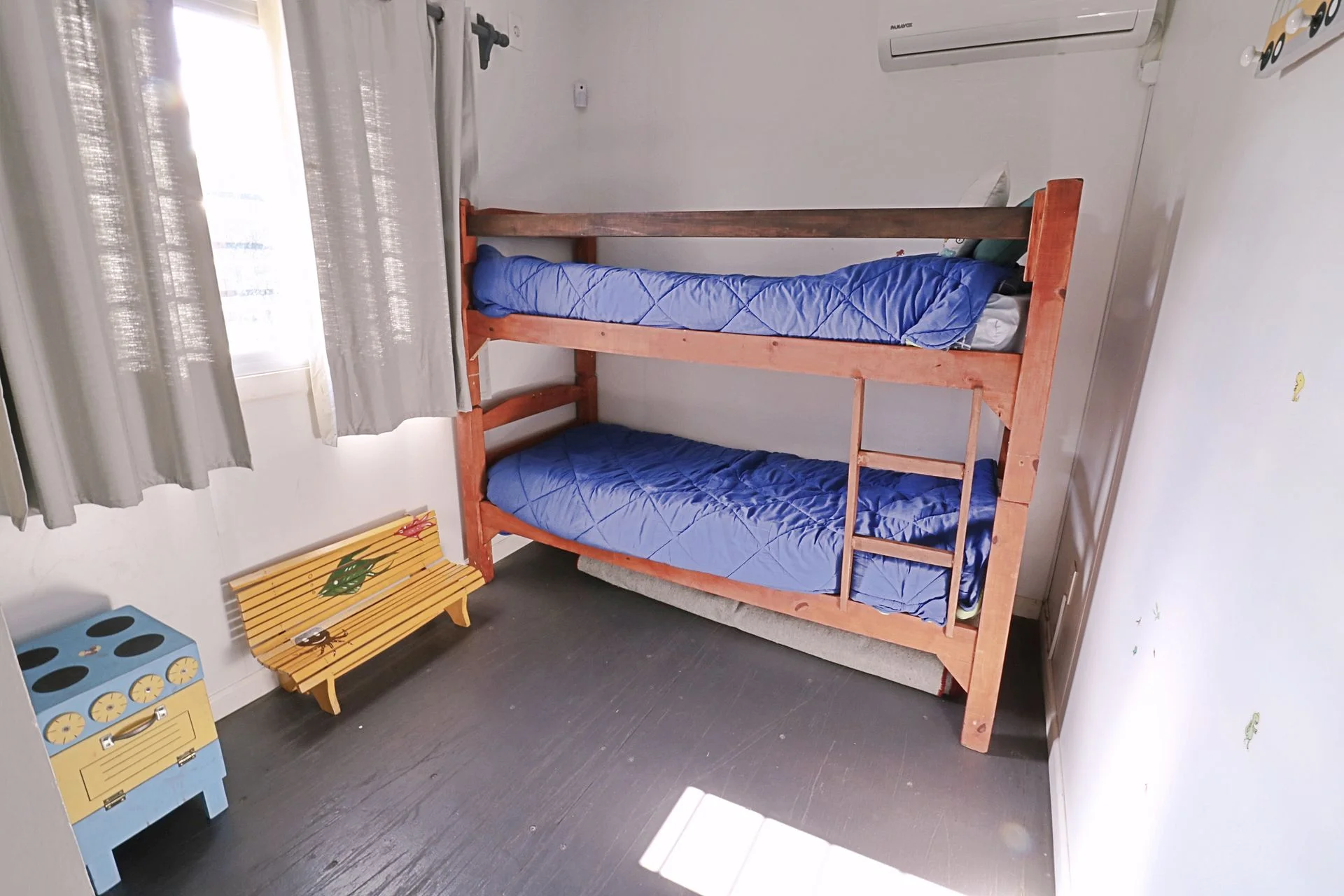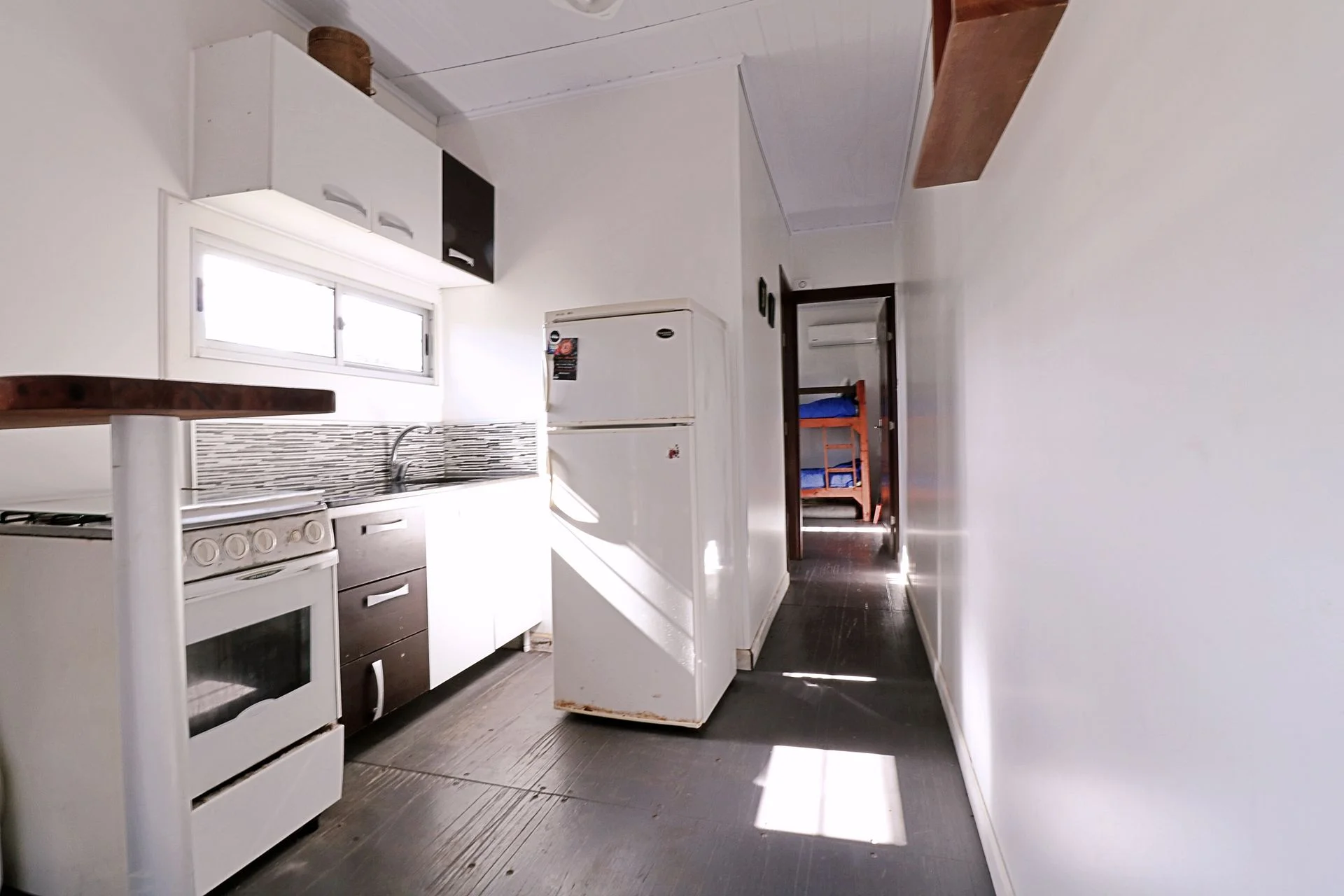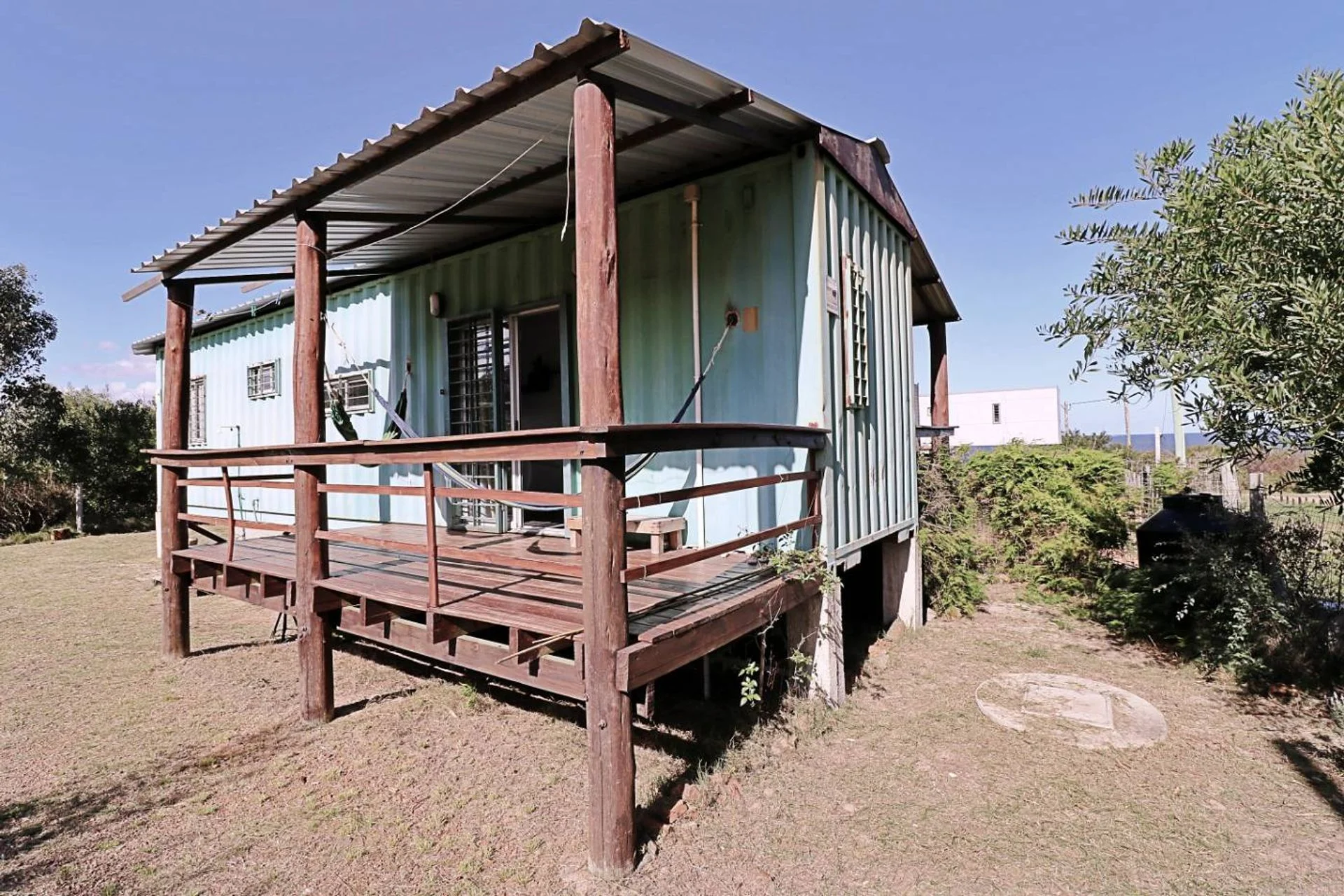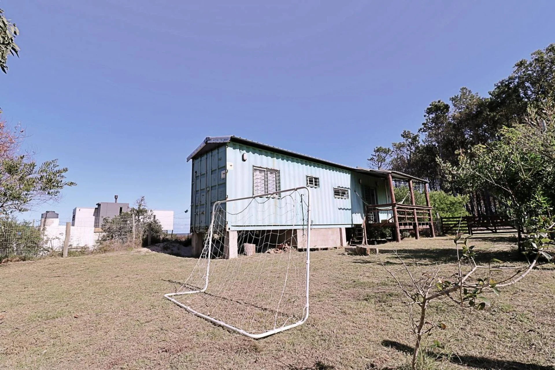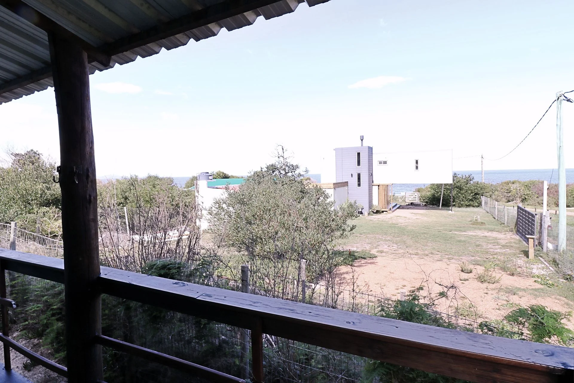 Se encuentra sobre dados de hormigón y dos deck en madera (uno de ellos con vista al mar), tanque de agua y pozo negro