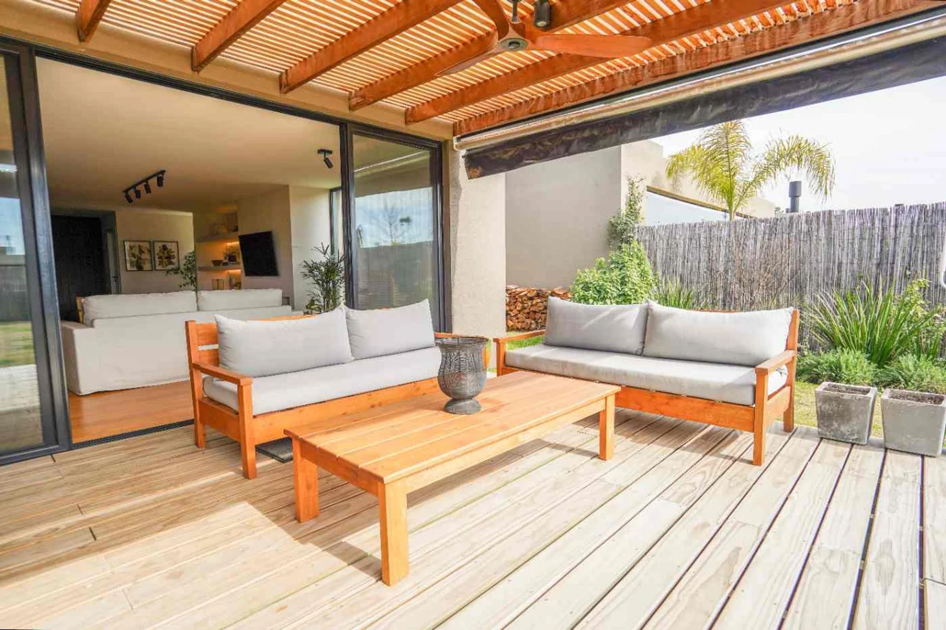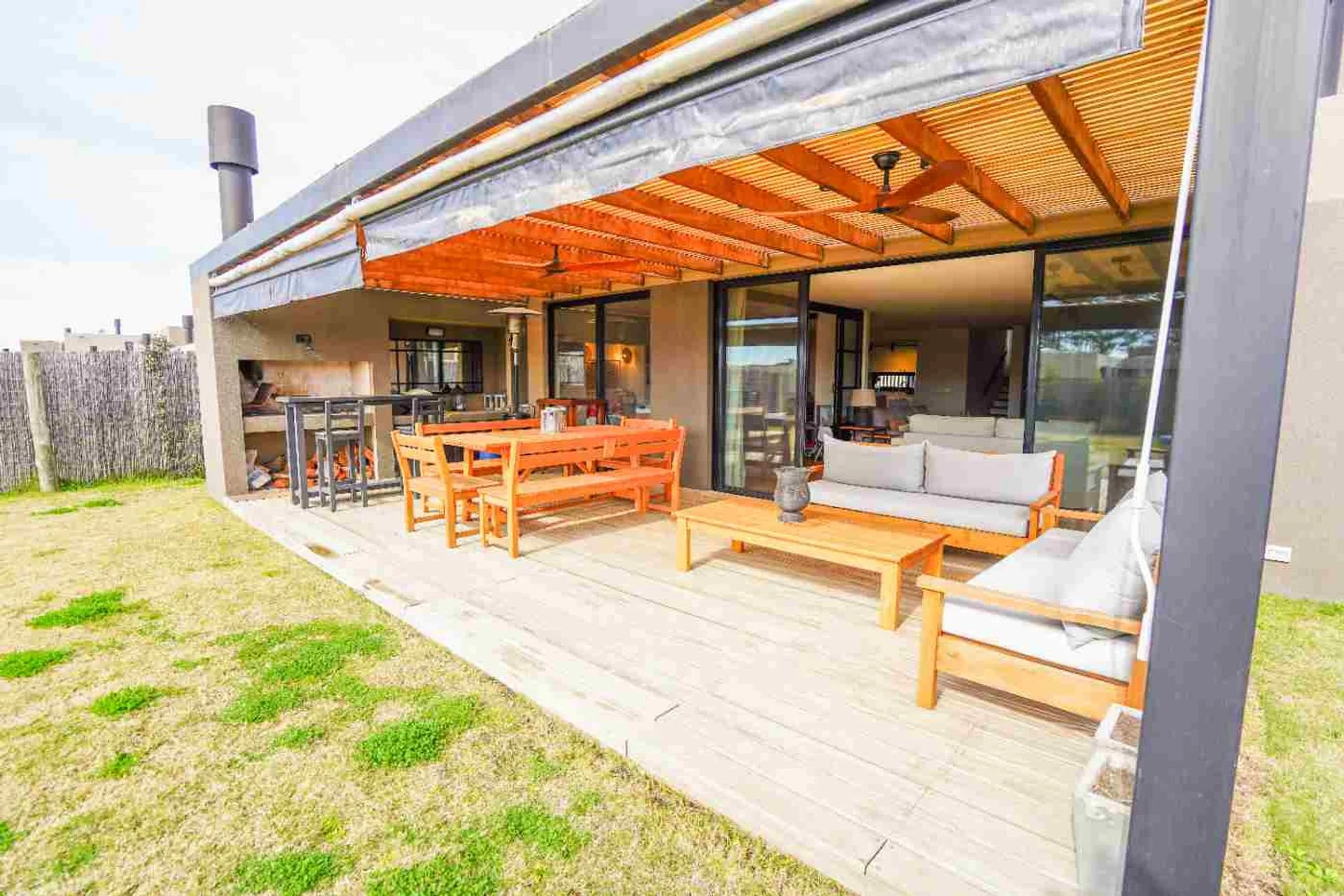 Desde el living comedor se accede a un deck techado con parrillero, de amplias dimensiones y con cerramiento en PVC para poder disfrutarlo todo el año.