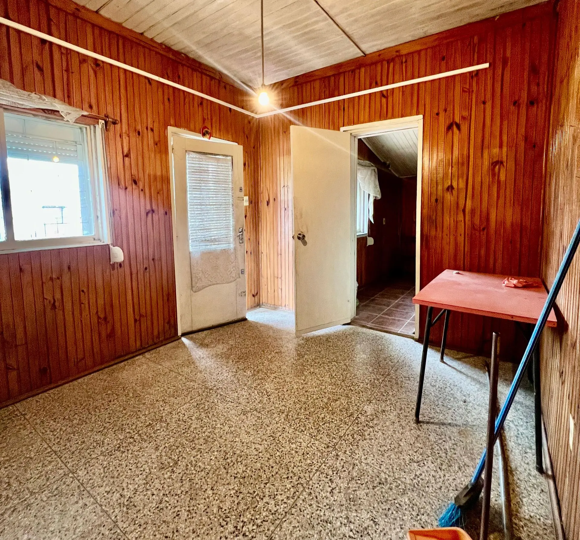 En su interior tenemos dos dormitorios, living-comedor con cocina integrada y baño. El garaje fue transformado a local comercial en un momento y hoy en día es una habitación en desuso, puede fácilmente volver a ser garaje con ingreso directo al inmueble.