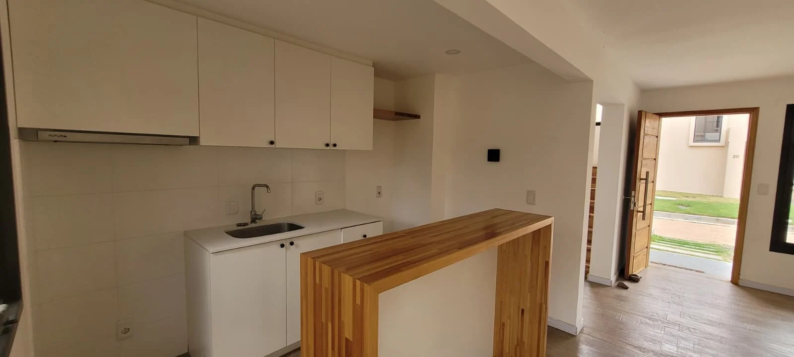 Casa en Complejo Lares de Vilaro , ruta interbalnearia Km 24500 a mts de Car One. Se desarrolla en dos plantas: Planta Baja: Living con cocina integrada y barra, lugar para lavadero , prevision baño . Planta Alta: Dos dormitorios uno con placares a medida, baño completo. Fondo con deck y parrillero techado, mesada con pileta y conexiones de agua y luz.