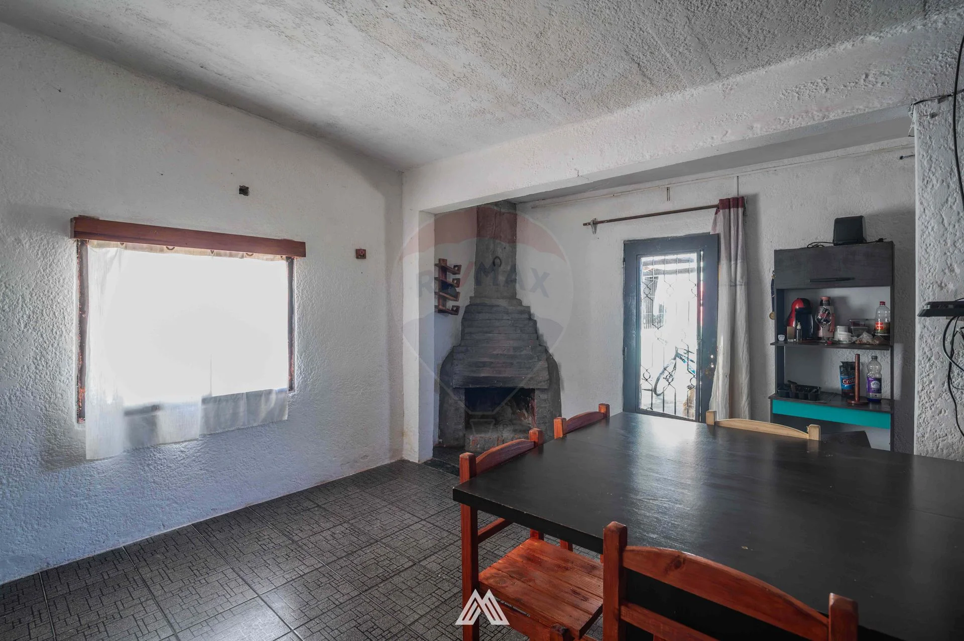 La misma cuenta con una casa al frente de 2 dormitorios con estufa a leña en el living comedor, cocina y baño, cuenta con techo de planchada, un espacio de cocheras amplio donde entran unos 3 autos. Hacia el fondo de la propiedad nos encontramos con una barbacoa con parrillero y kitchenette de techo liviano con pisos de baldosa, cuenta con un alero al frente en estado a reciclar.