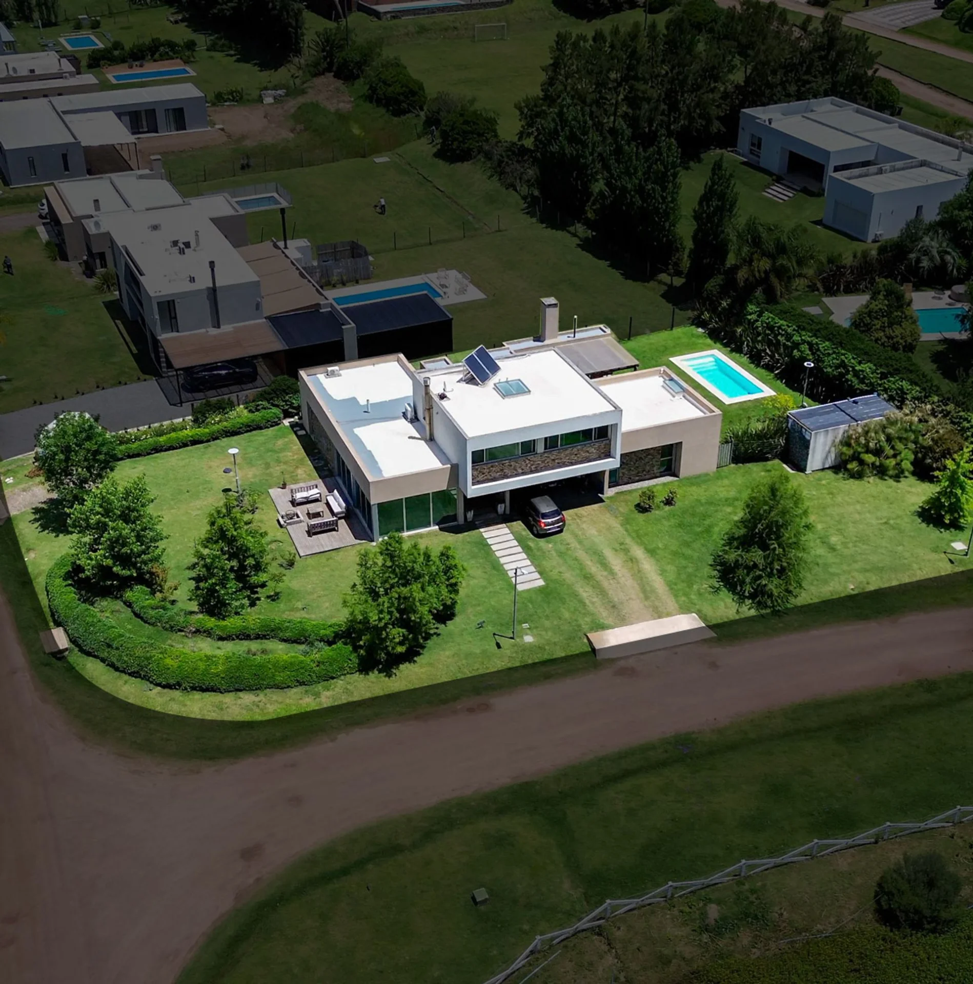 La casa se destaca por sus prestaciones de nivel superior: losa radiante, cableado de red en toda la propiedad, paneles solares para eficiencia energética, escudo térmico EIFS y sistema de cámaras, que garantizan bienestar, seguridad y bajo mantenimiento.