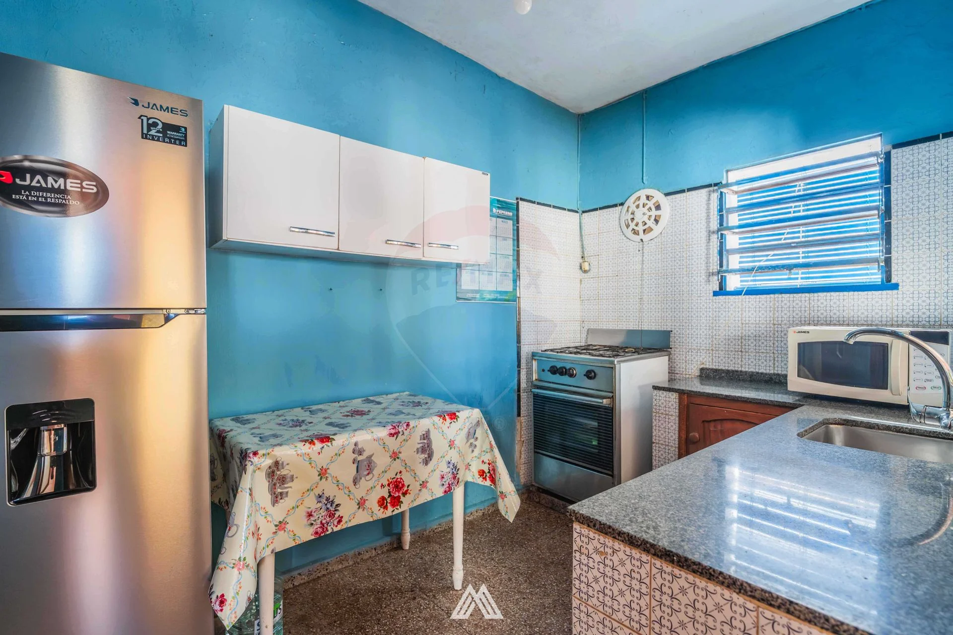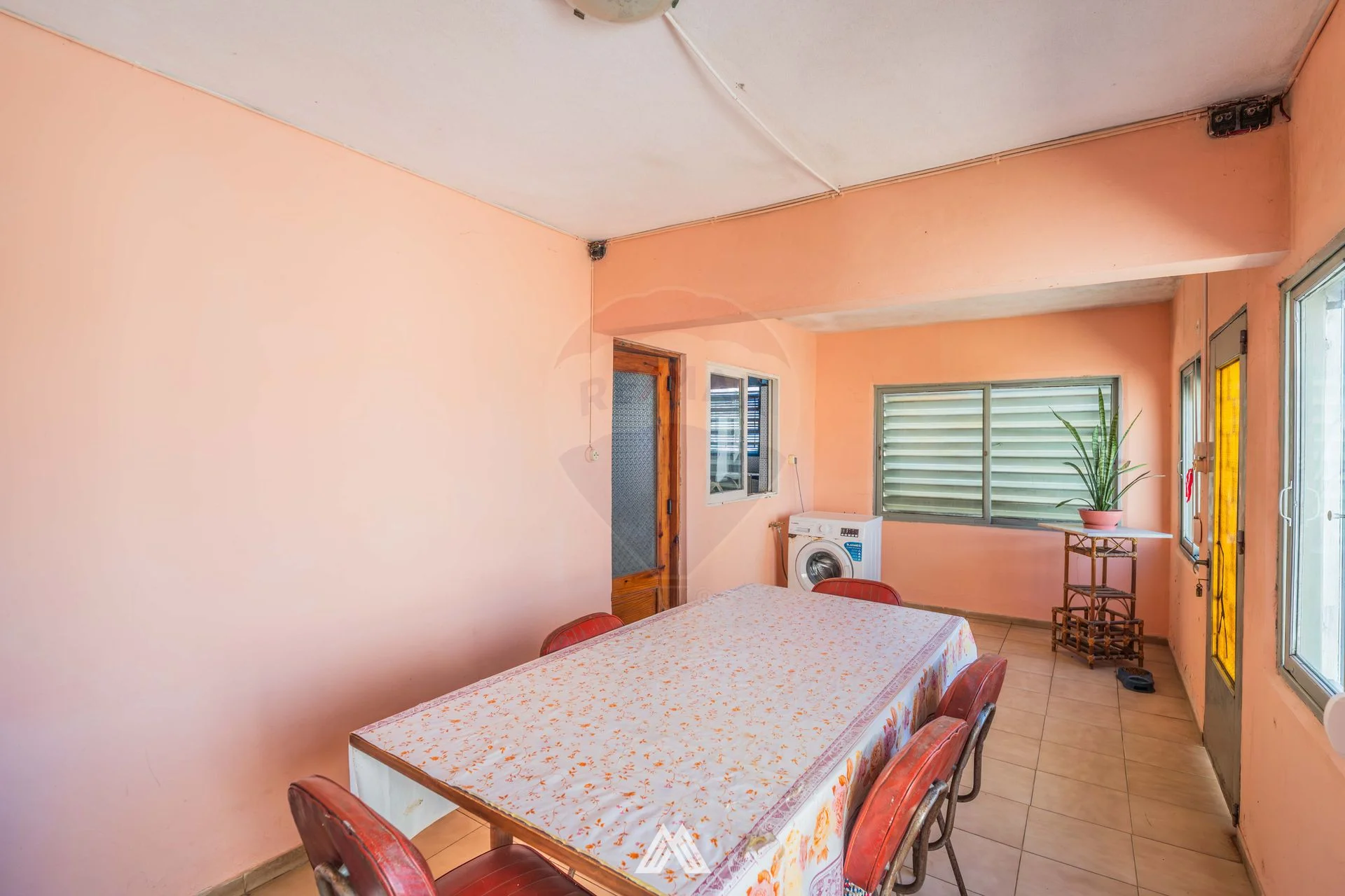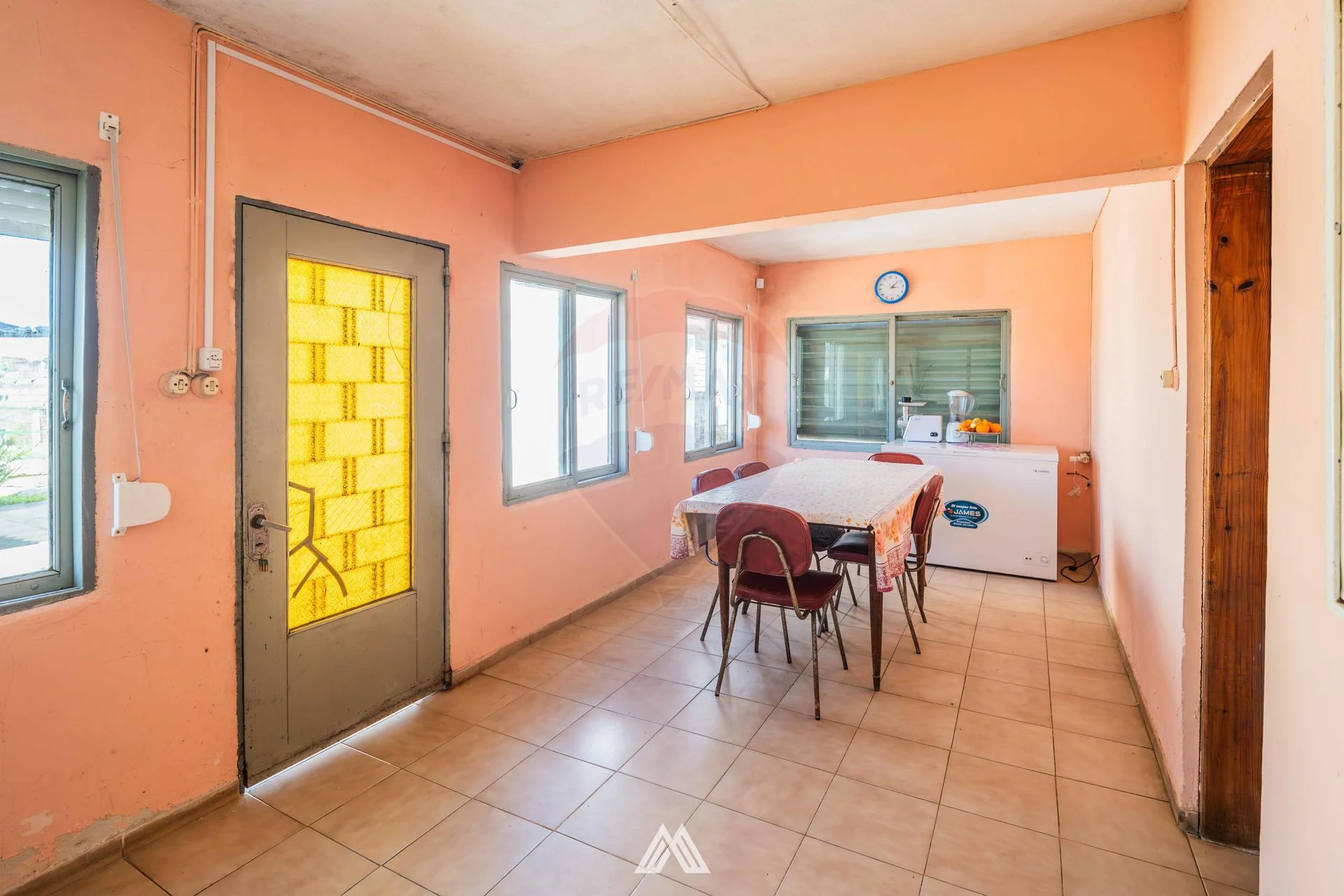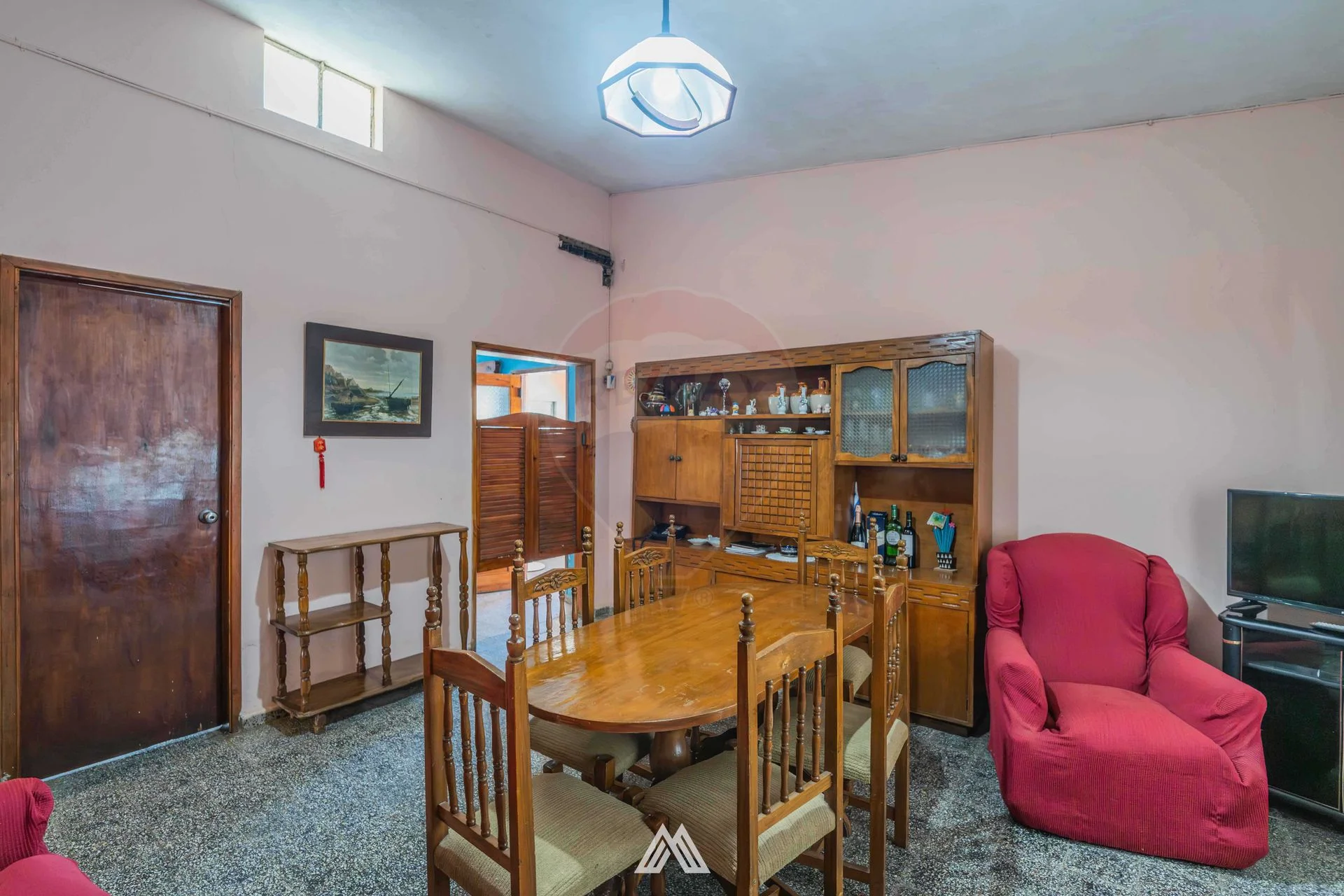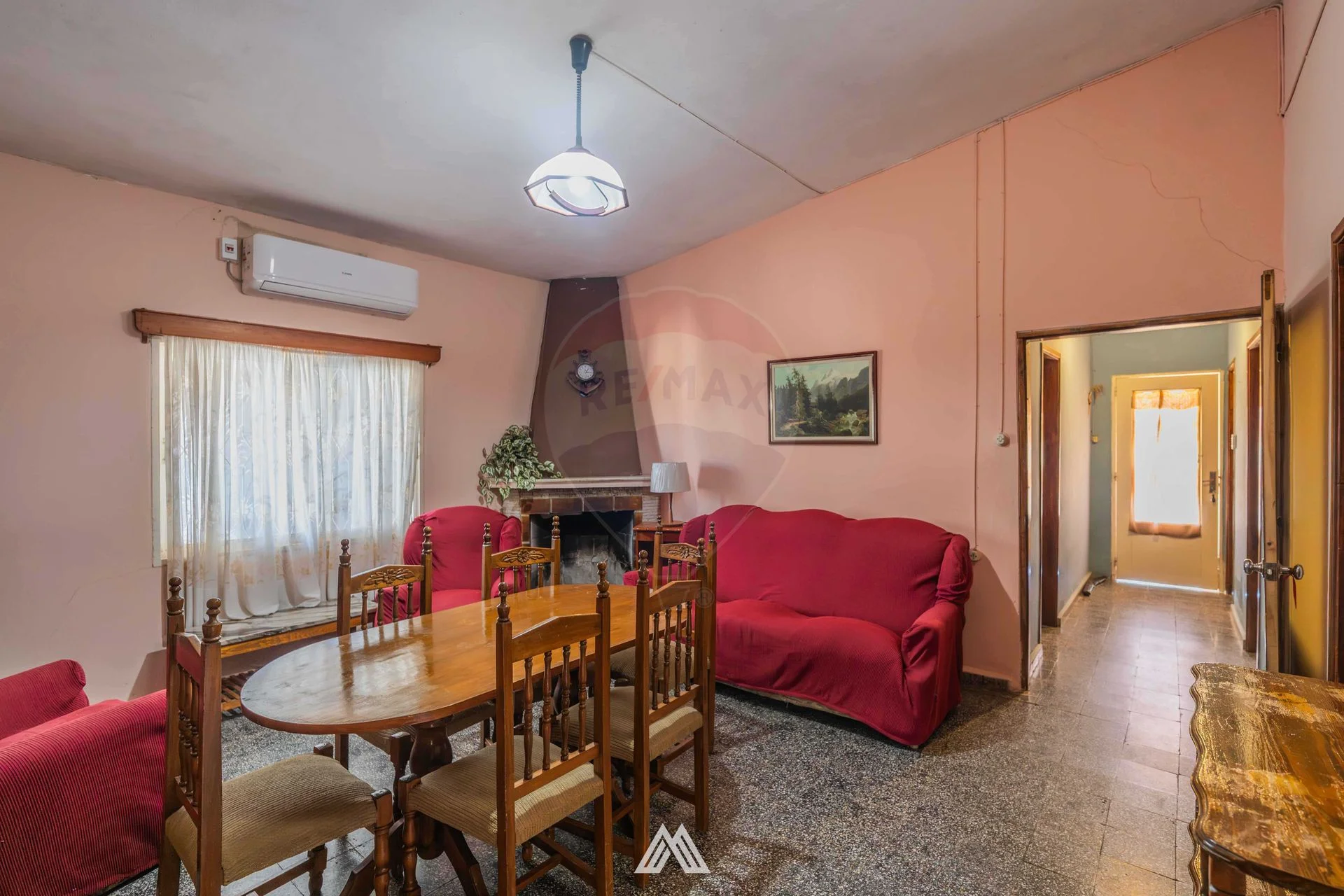 La casa principal, construida en 1970, cuenta con techo de planchada y se distribuye en tres dormitorios (dos al frente), living-comedor con estufa a leña, baño completo, cocina independiente y un segundo comedor muy luminoso y ventilado. Presenta pisos de baldosas y aberturas de hierro de época con rejas en el mismo material.