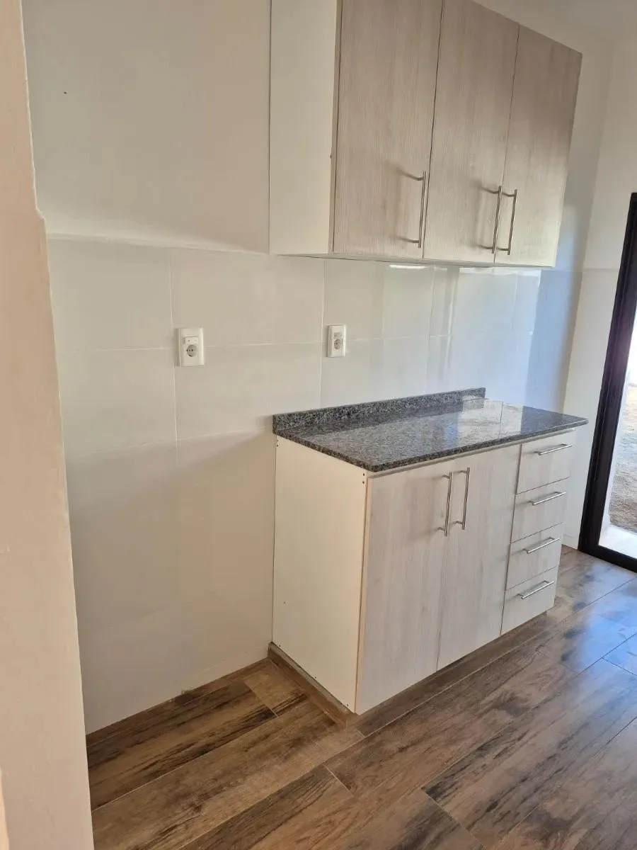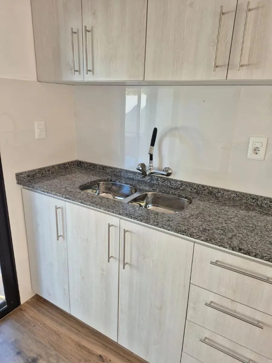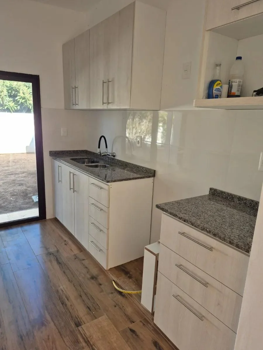 Dentro de la vivienda se encuentra un práctico mueble auxiliar que alberga el calefón y puede utilizarse como escobero o espacio multiuso. Los dormitorios están diseñados con espacio suficiente para instalar roperos a medida de forma cómoda y funcional. La puerta principal de cada unidad es blindada, brindando mayor seguridad. En el exterior, el portón corredizo está listo para ser automatizado con motor.