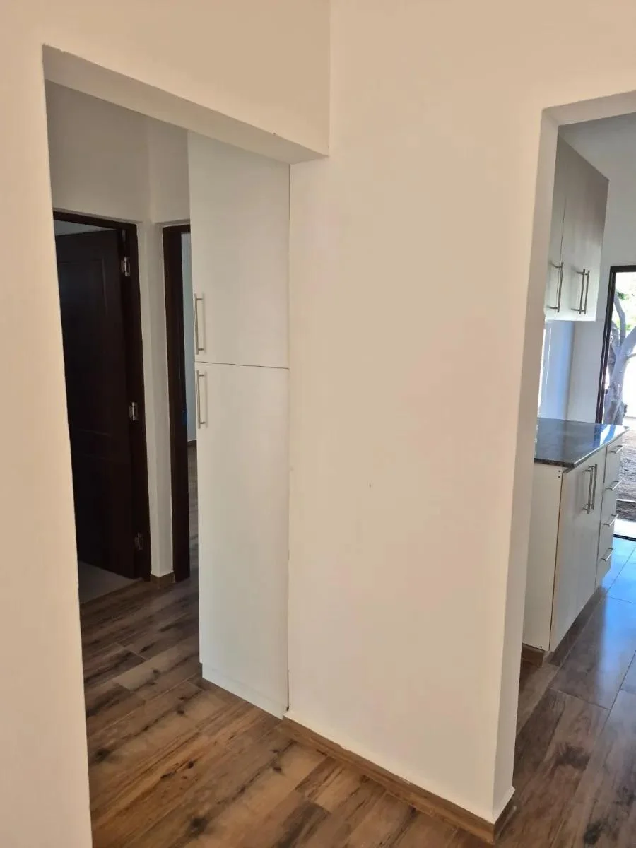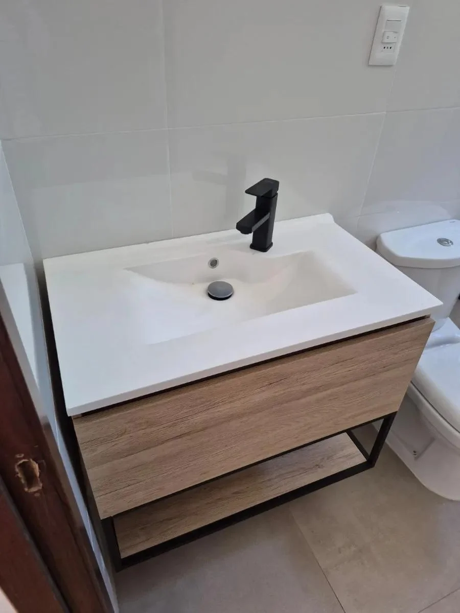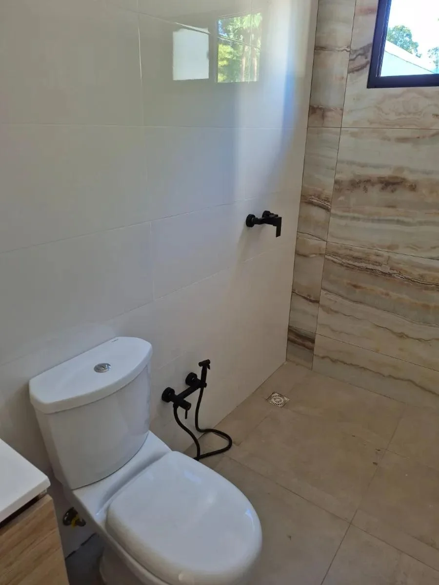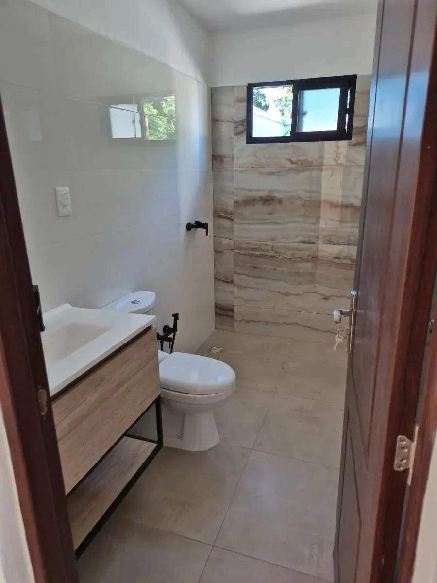 Dentro de la vivienda se encuentra un práctico mueble auxiliar que alberga el calefón y puede utilizarse como escobero o espacio multiuso. Los dormitorios están diseñados con espacio suficiente para instalar roperos a medida de forma cómoda y funcional. La puerta principal de cada unidad es blindada, brindando mayor seguridad. En el exterior, el portón corredizo está listo para ser automatizado con motor.