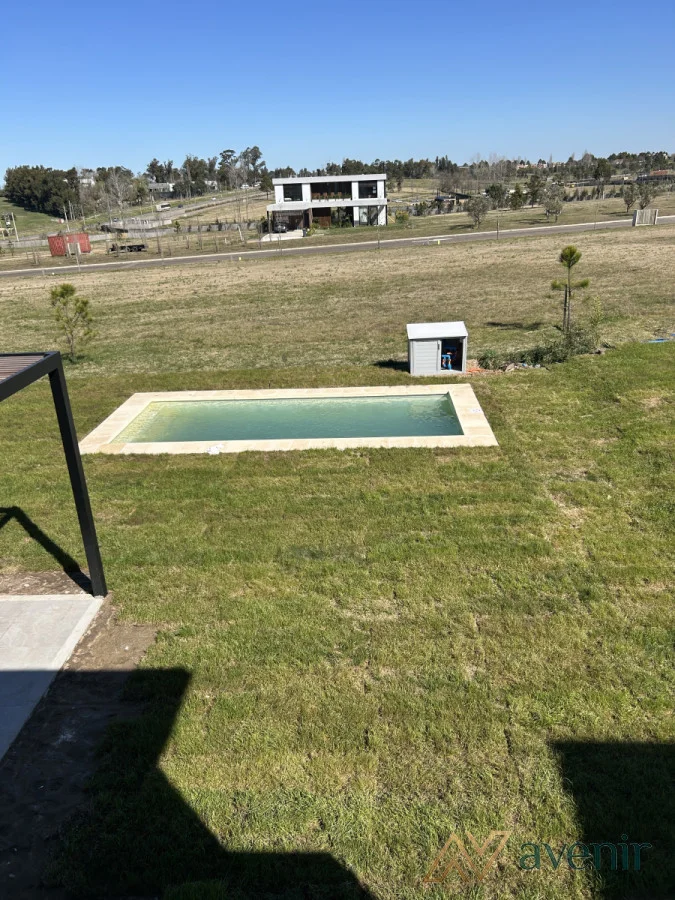 Al ingresar, un amplio hall lleva a un living-comedor espacioso, conectado parcialmente con una cocina moderna con isla central, ideal para compartir momentos en familia. También incluye un escritorio, toilette, dormitorio con baño de servicio y lavadero.En el exterior, encontrarás un porche de entrada, dos pérgolas (una para vehículos y otra para parrilla), y una piscina, perfecta para disfrutar reuniones al aire libre. El diseño moderno destaca por sus líneas limpias y dinámicas, con volúmenes que aportan estilo a ambos niveles.