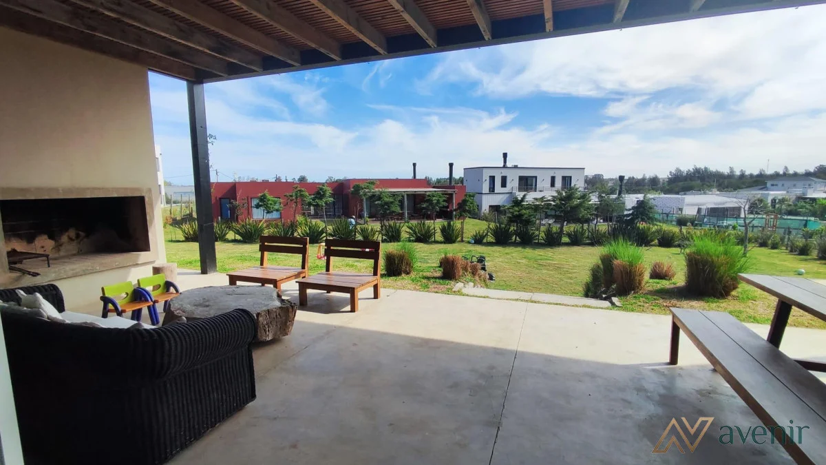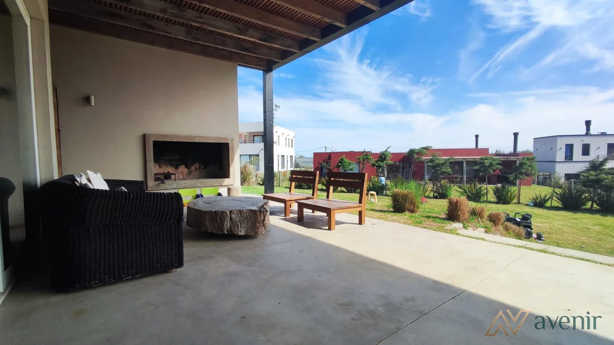 - Al fondo, una elegante pérgola techada de 50 m² donde se ubica la mesa para invitados y living exterior con estufa para el disfrute día y noche.
