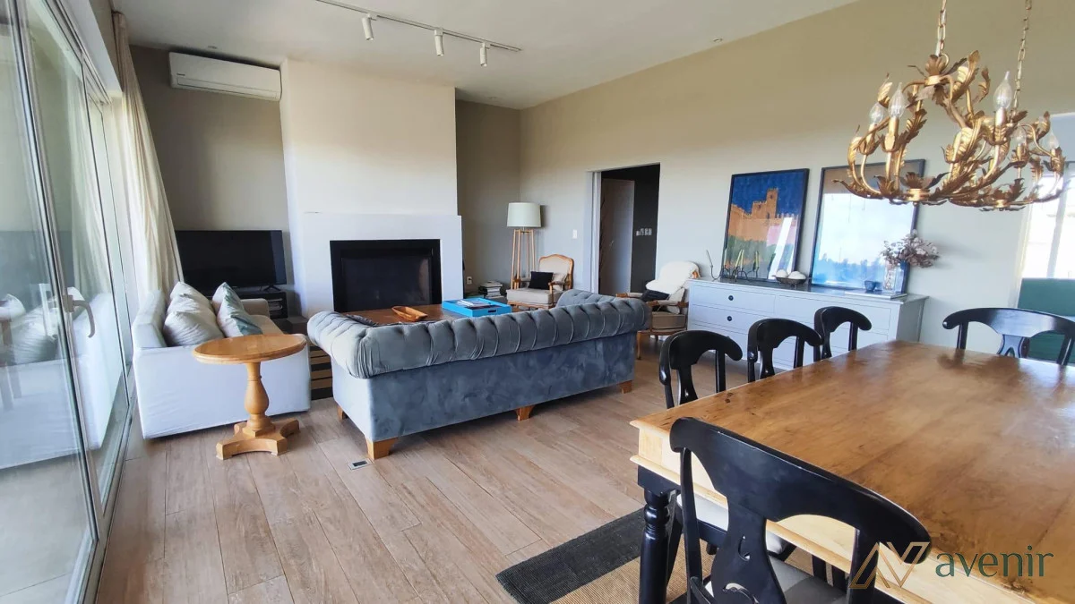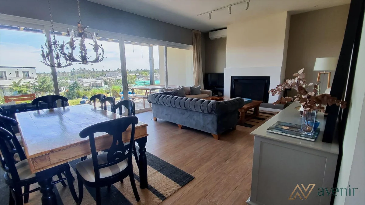 - Amplio recibidor que conecta mediante puertas corredizas al luminoso living comedor con ventanales de piso a techo, estufa a leña tradicional y vistas privilegiadas hacia Lomas.