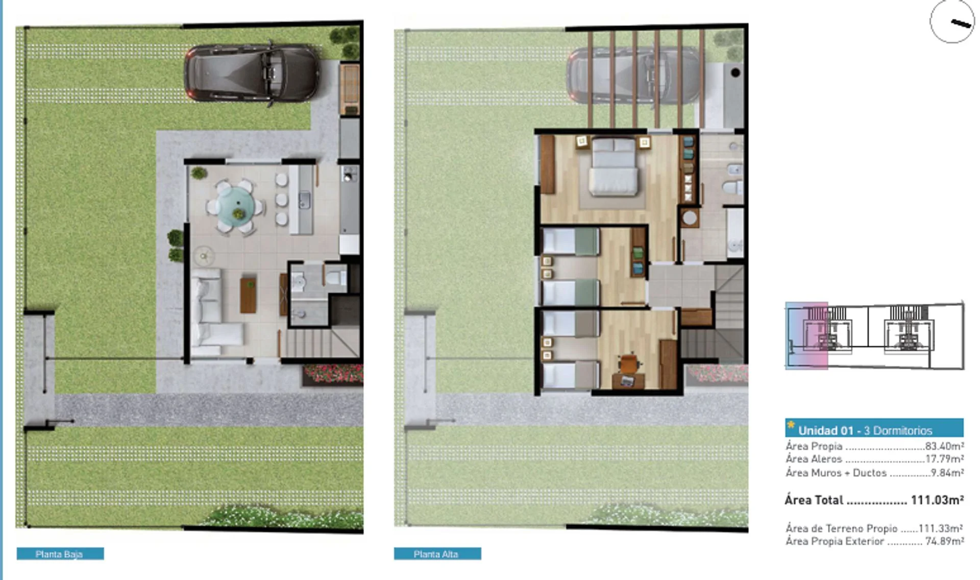 • Privacidad y seguridad: concepto in house, con muros perimetrales de 2 metros y cercos divisorios entre casas.