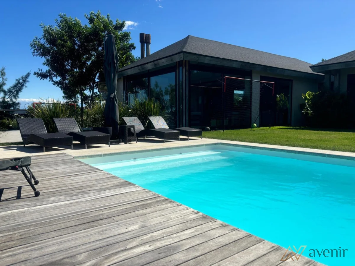 Piscina climatizada con bomba de calor acompañada de un deck exterior con vista despejada y abierta que completa la posibilidad del disfrute total.