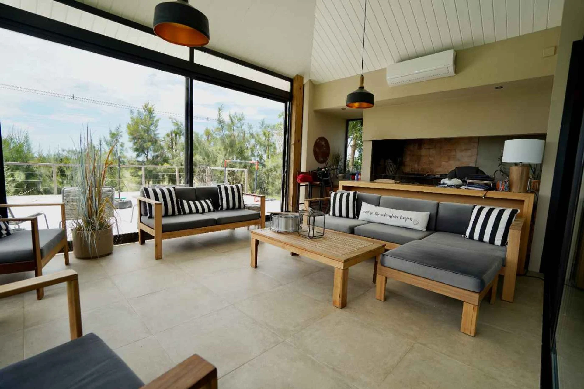 Aire acondicionado en todos los ambienes, calefaccion con loza electrica sectorizada y estufa a leña tradicional