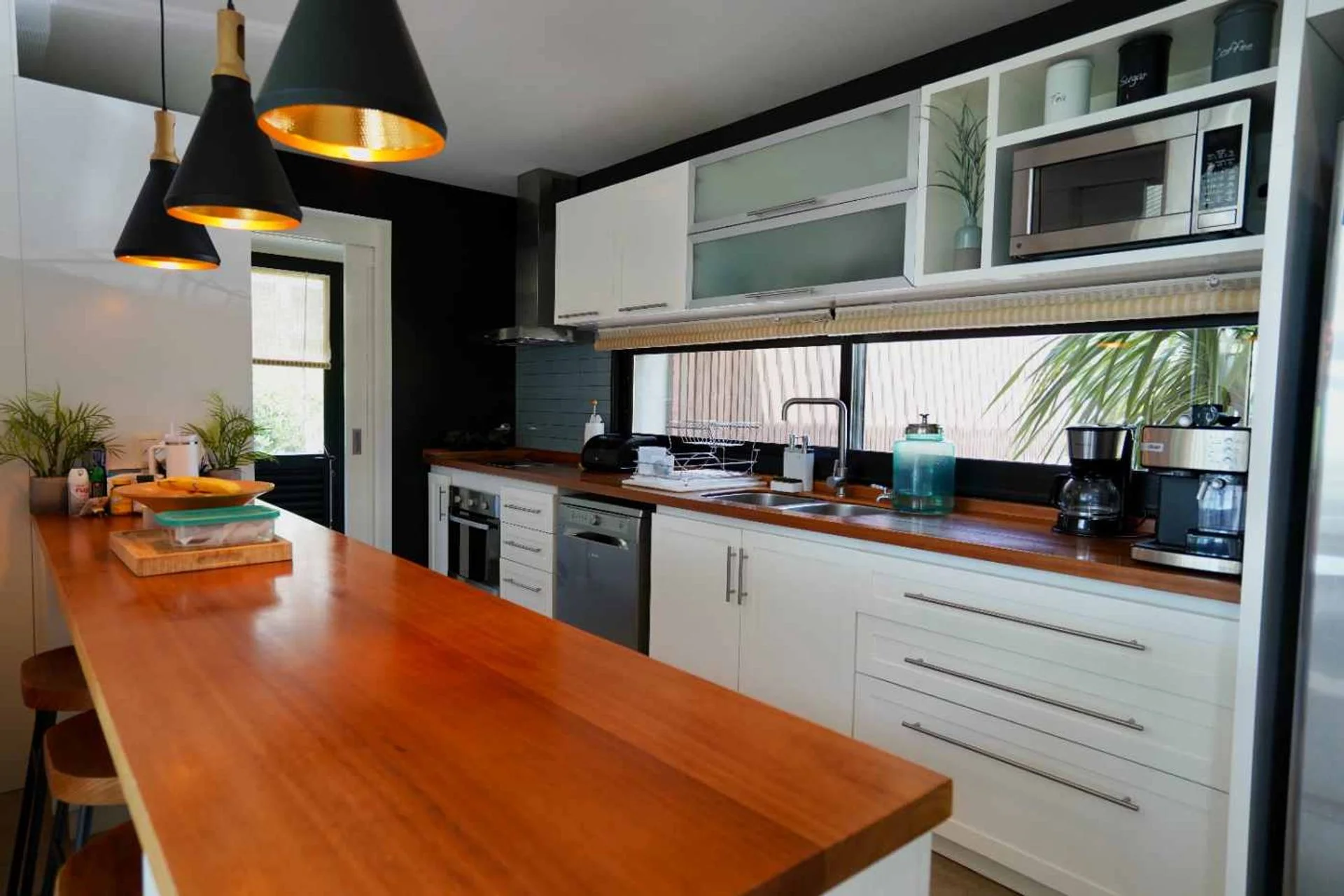 Al ingresar tenemos un hall de distribucion, living comedor con estufa a leña y cocina integrada con barra desayunadora que se puede cerrar y dejar independiente. Dormitorio de servicio y baño con entrada independiente.