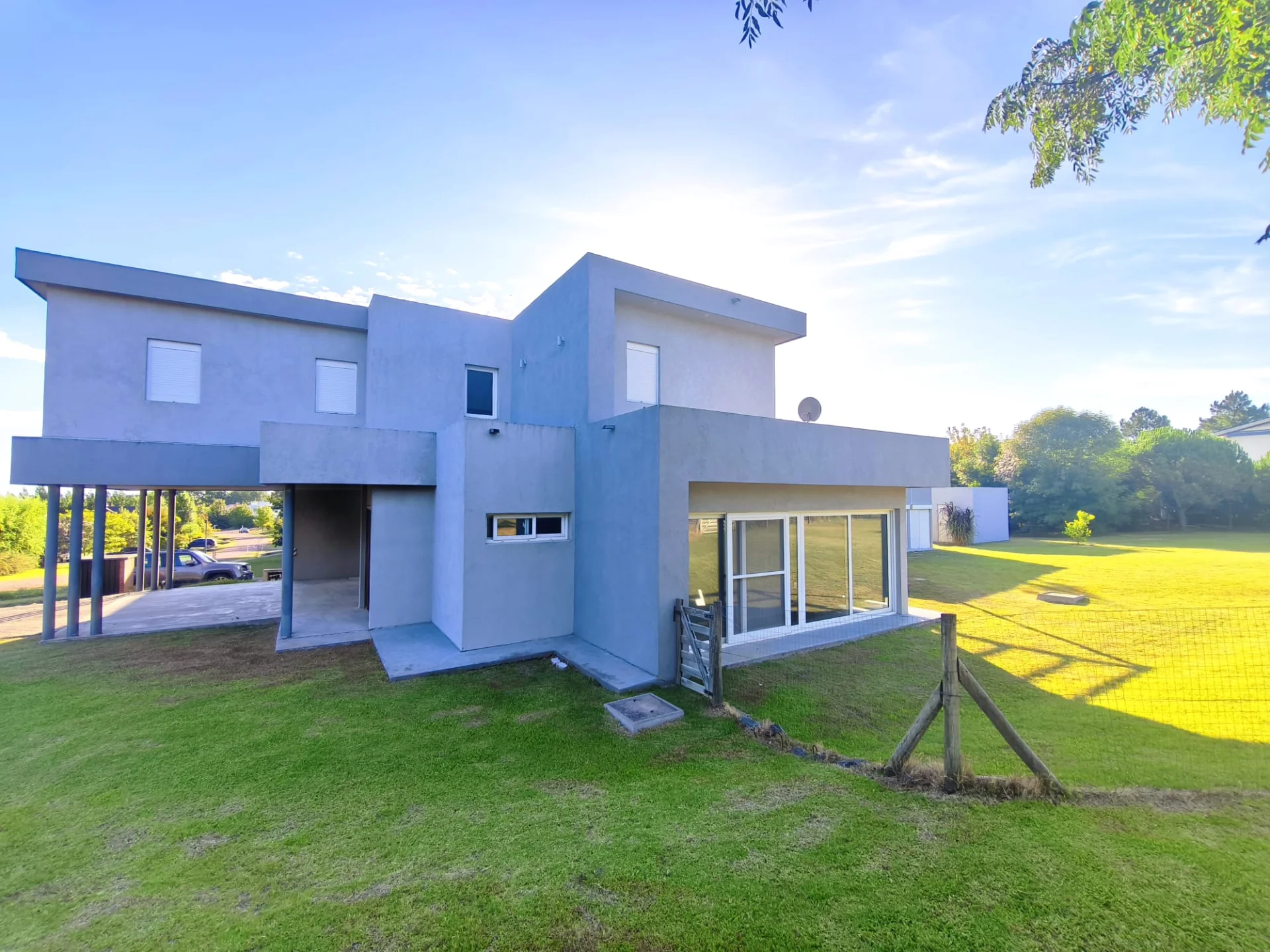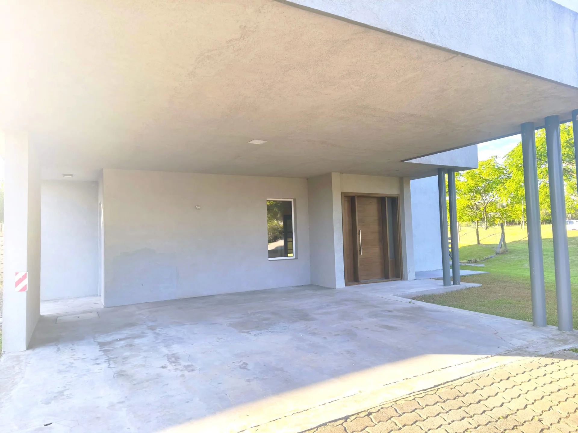 Amplio acceso con espacio techado para autos.