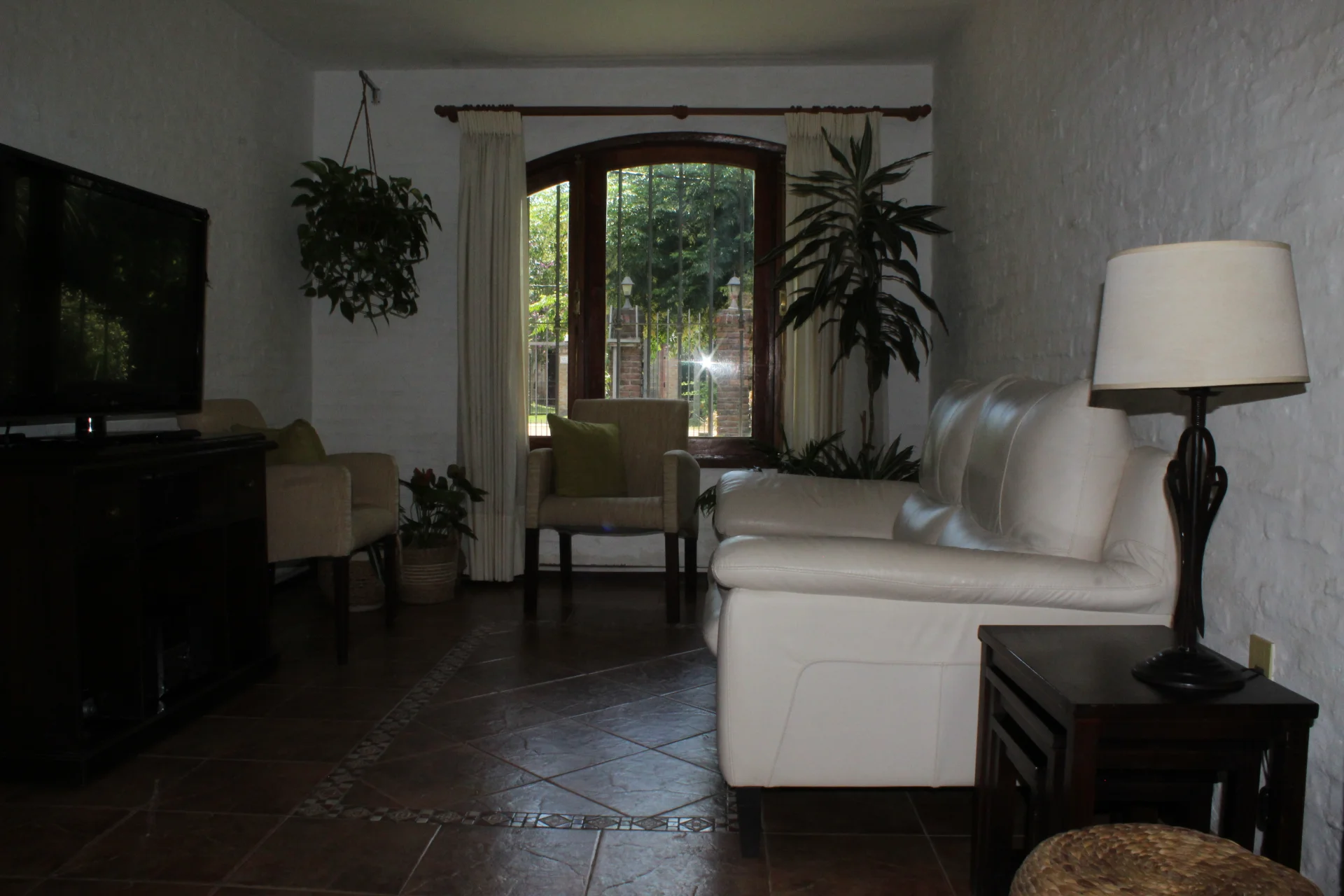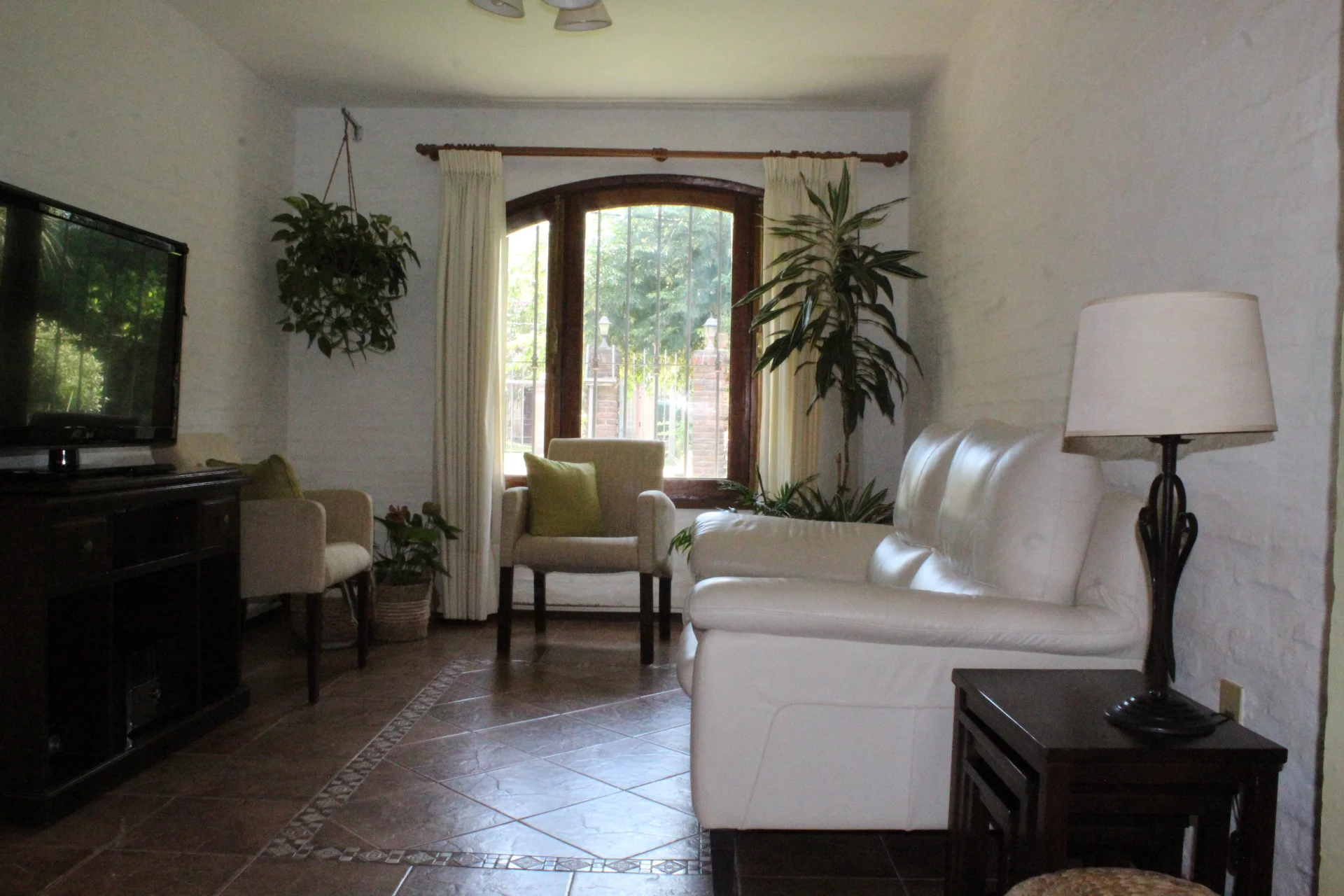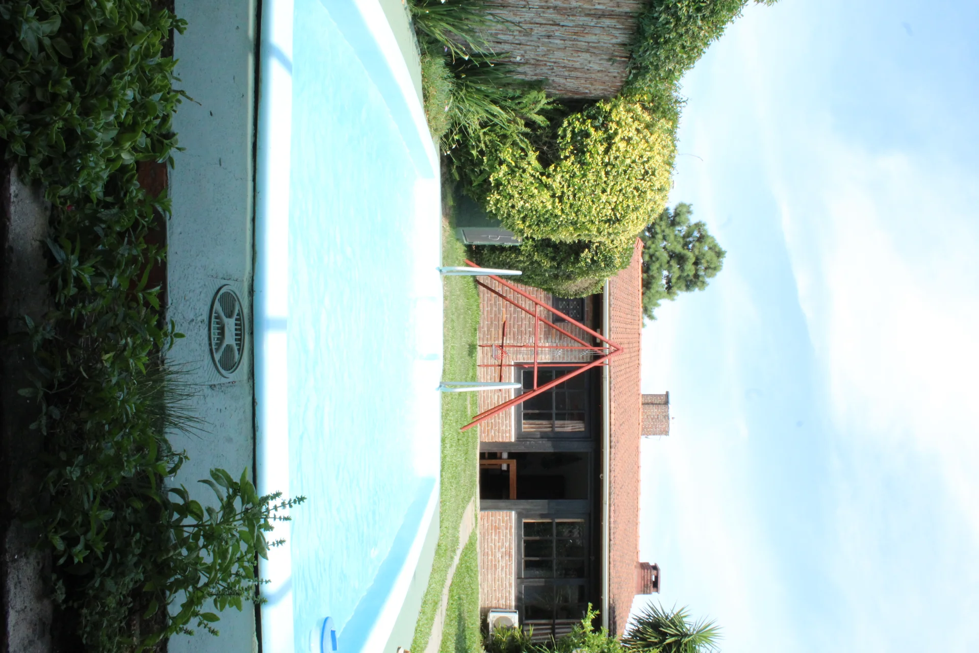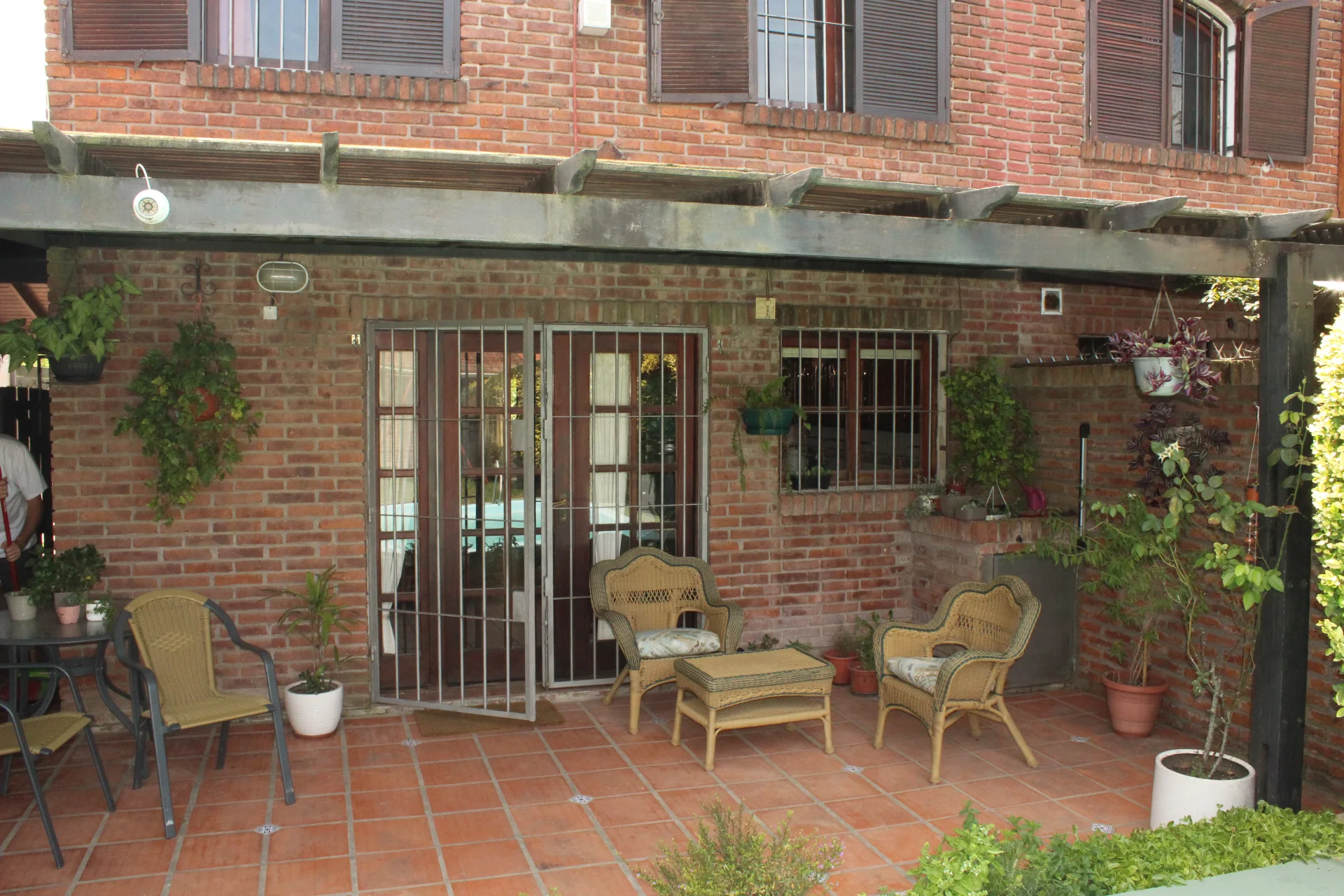 Al jardín se accede desde en interior de la casa (puerta-ventana en el comedor) o por las cocheras laterales, lo que permite recibir en la barbacoa o el entorno de la piscina, sin que se ingrese a la propiedad. Se trata de un amplio jardín con césped y plantas que generan un hermoso entorno. Además, anexo a la casa hay un espacio techado (semi cerrado), con buena sombra, comodidad para disfrutar el exterior, comer fuera de la casa, etc.