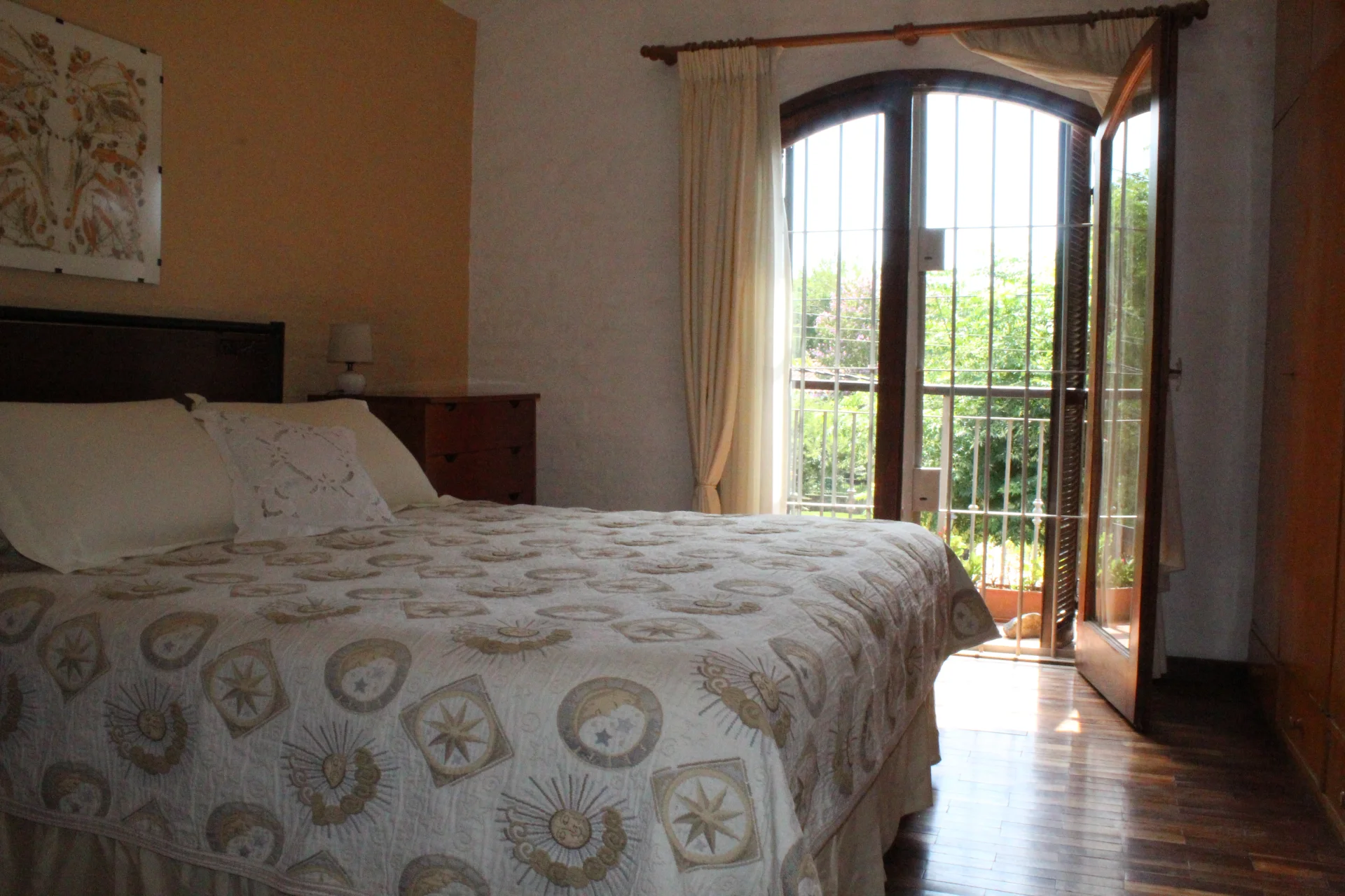 El dormitorio principal tiene un balcón al frente sobre el jardín anterior. Los dos dormitorios restantes,
