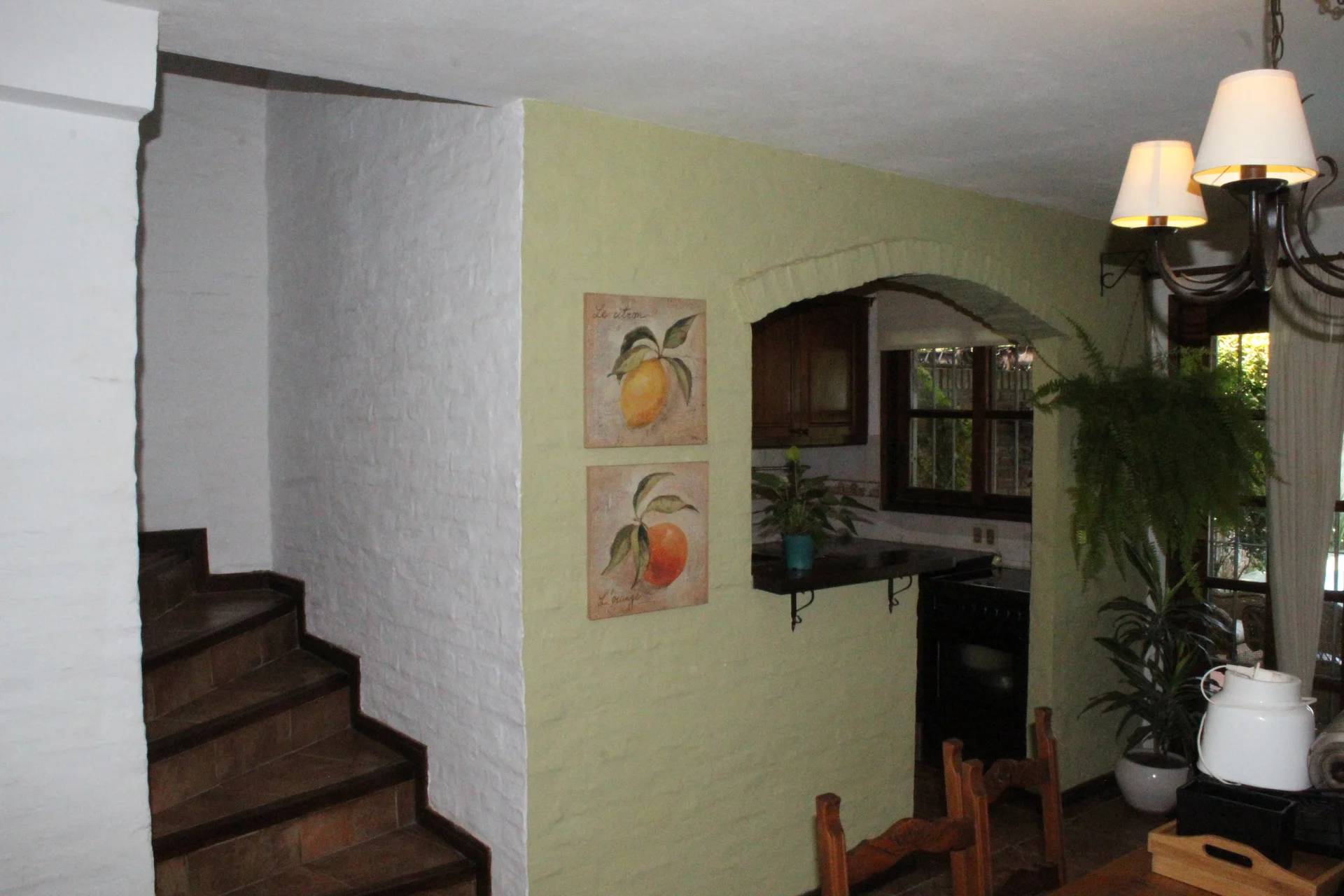 Se ingresa a un living, con ventana al frente (vista al jardín anterior). Sigue el comedor con hogar, integrado a la cocina a través de un desayunador con mesada de madera. La cocina tiene una cómoda mesada de granito con placares (bajo y sobre mesada). Las instalaciones están en perfecto estado de conservación y funcionamiento, tiene ventana al patio lo que asegura buena luz y ventilación.